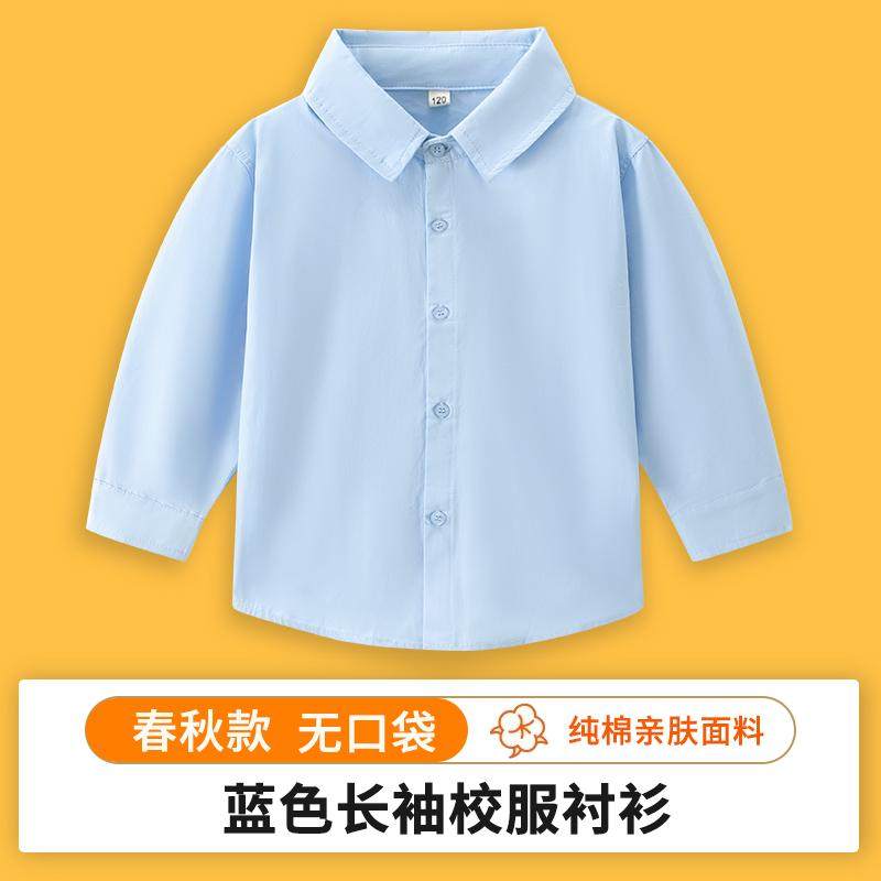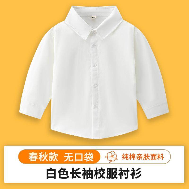 儿童白衬衫男童女童纯棉长袖衬衣春秋季中大童全棉学生表演出校服