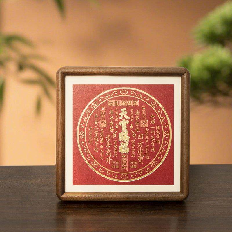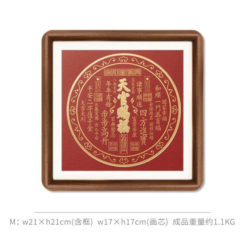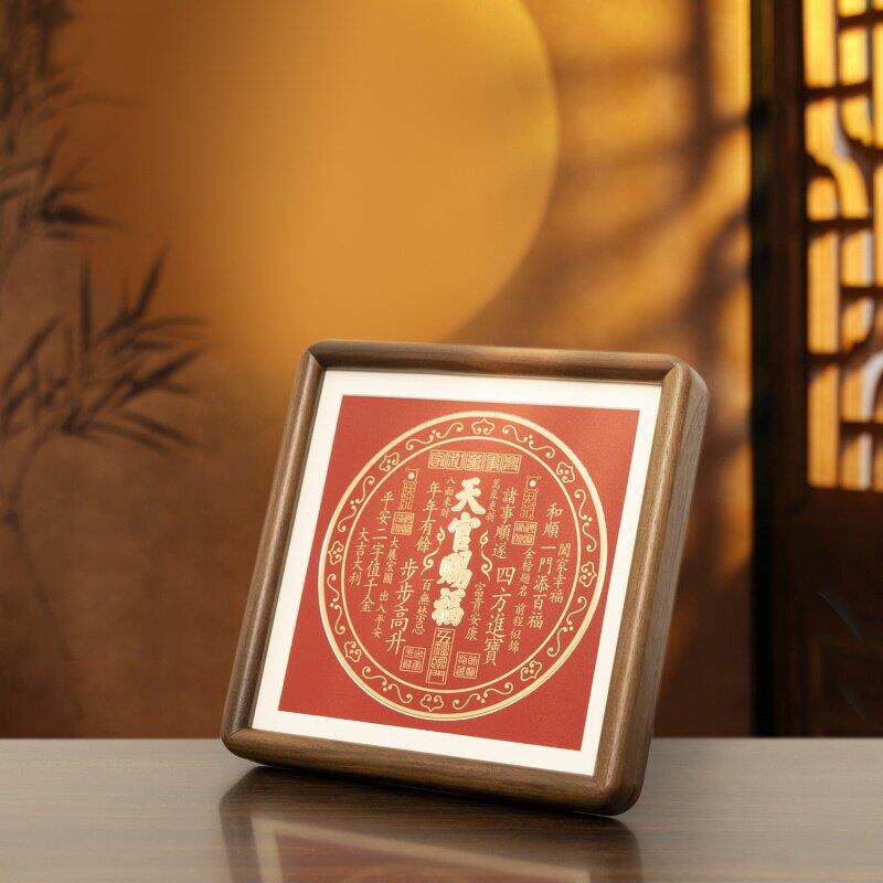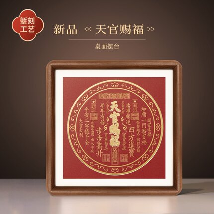 铜雕《天官赐福》桌面小摆台招财风水文字办公摆件相框装饰画解压