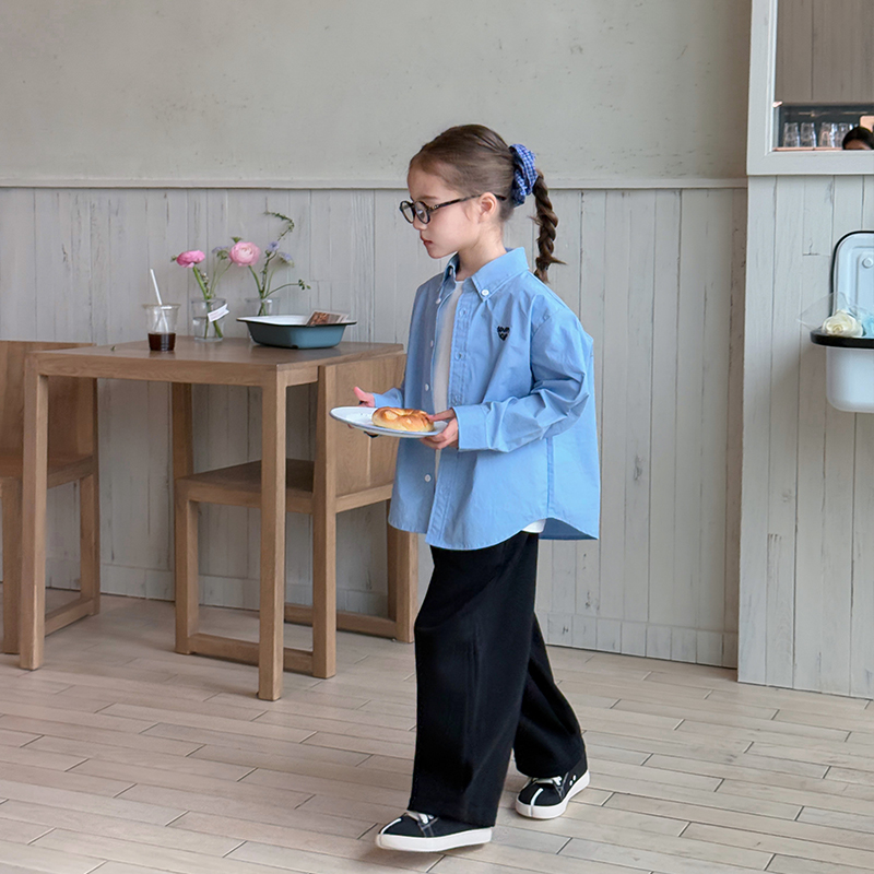【贵族学院】柒号童仓女童韩版刺绣翻领衬衫春装新款百搭纯色上衣