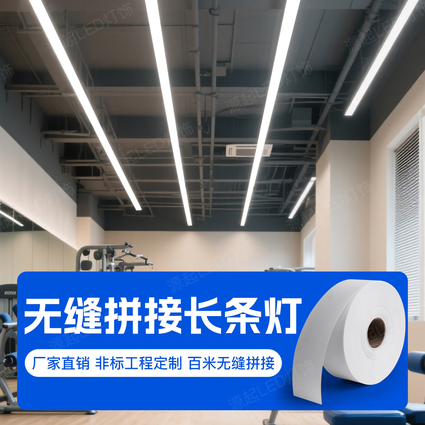 长条灯无缝拼接led长条灯健身房商场办公室超市超亮长条形吊灯