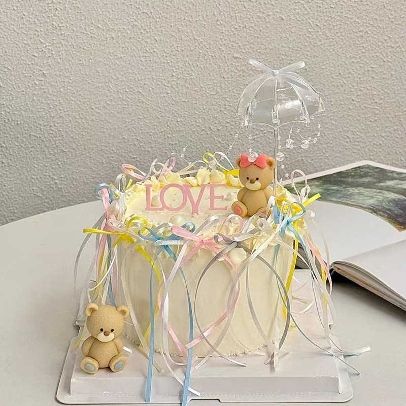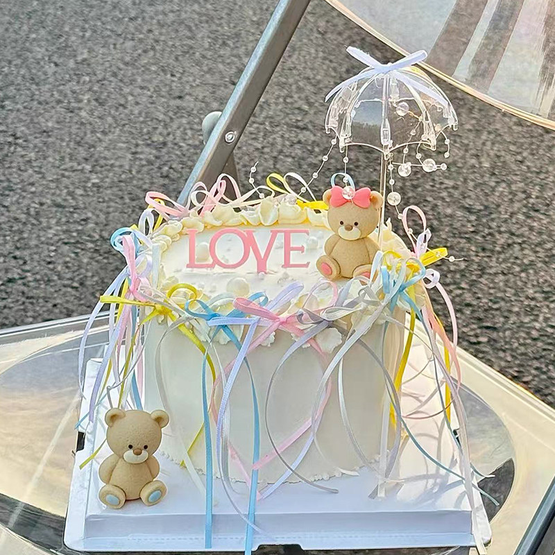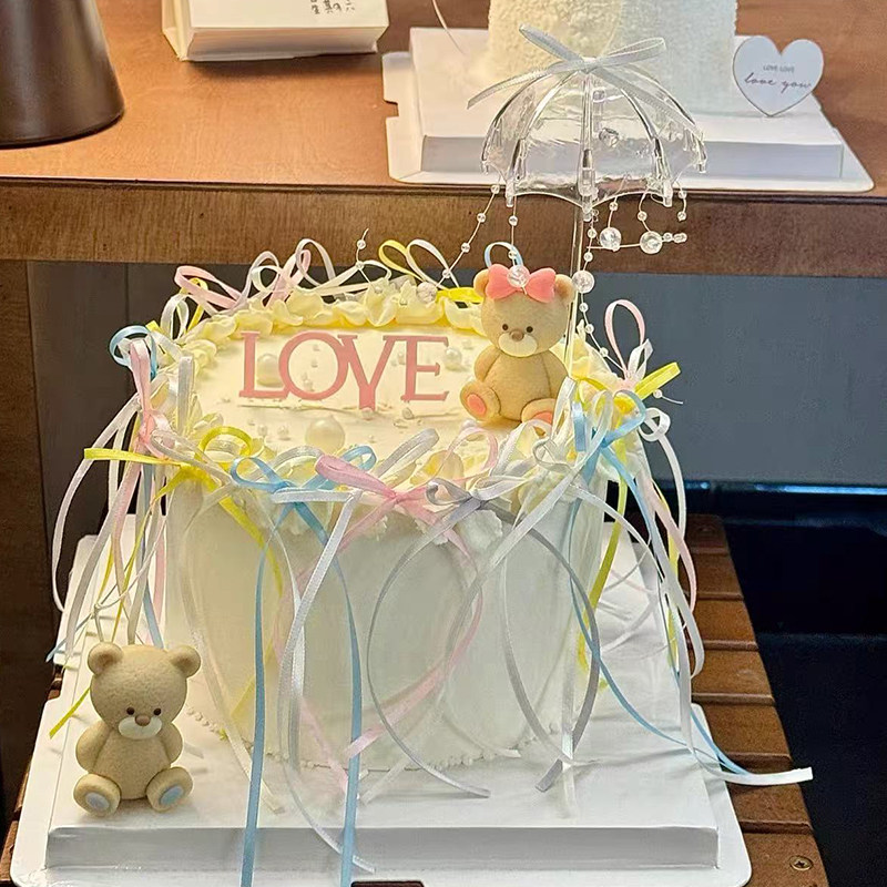 2.14烂漫情人节透明雨伞蛋糕装饰情侣小熊摆件love亚克力装扮插件