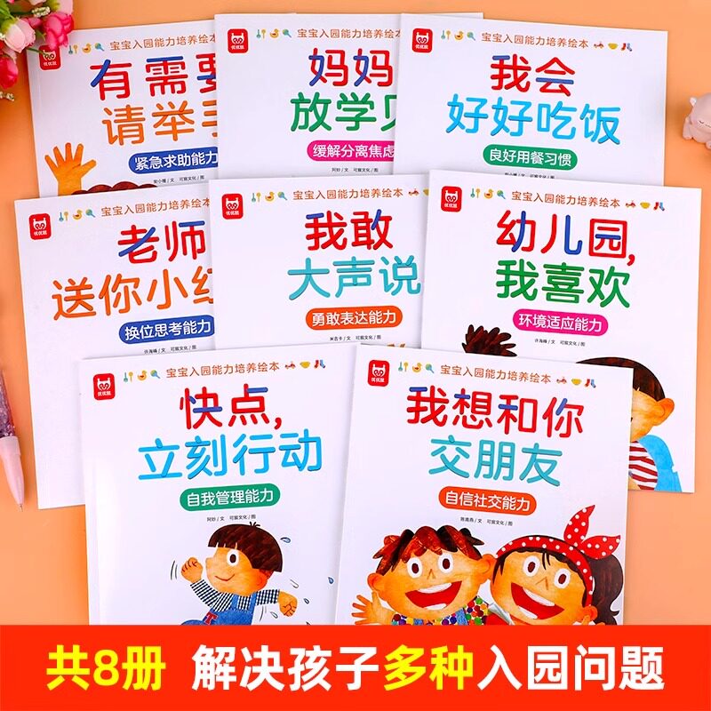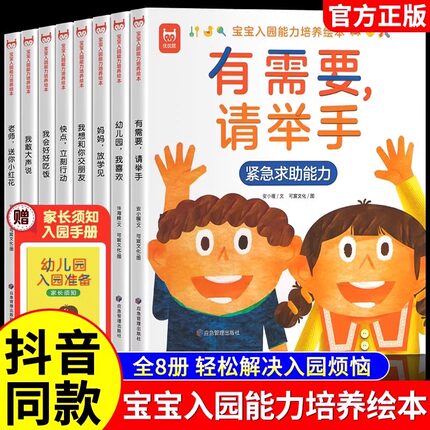 宝宝入园能力培养绘本全8册爱上幼儿园情商培养绘本 有需要请举手绘本3–6岁小班两三岁宝宝书籍故事读物益智早教书入学前教育自理