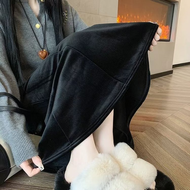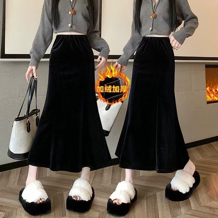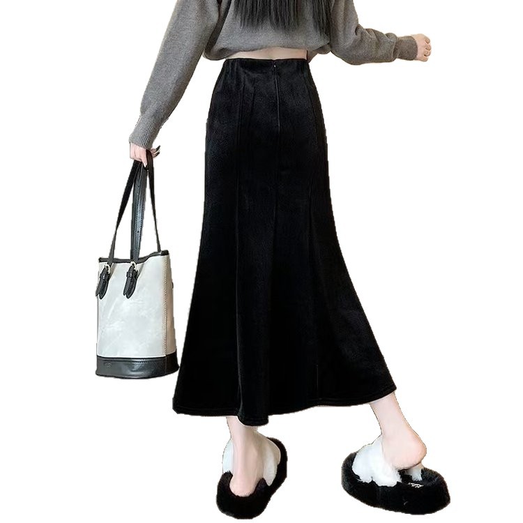 一件时尚黑色秋冬新款鱼尾裙半身裙高腰包臀丝绒中长款裙子女