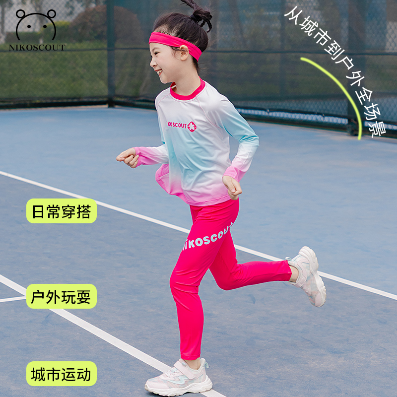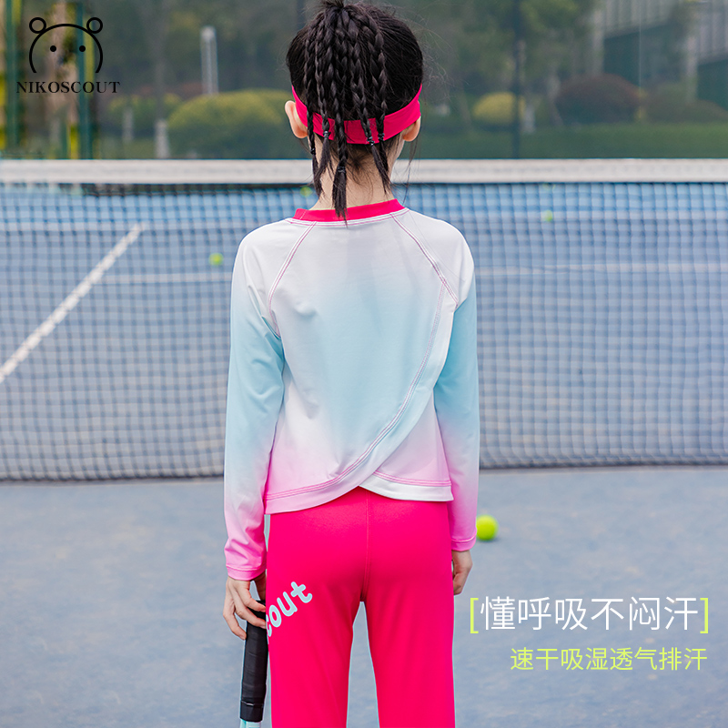 女童运动速干衣套装春秋瑜伽长袖防晒跑步羽毛球训练篮球女孩衣服