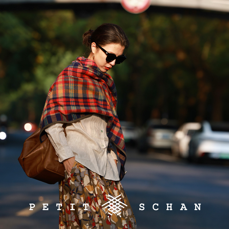 小闪 田园诗 纯羊绒苏格兰格纹披肩三角巾早秋度假法式高级感围巾