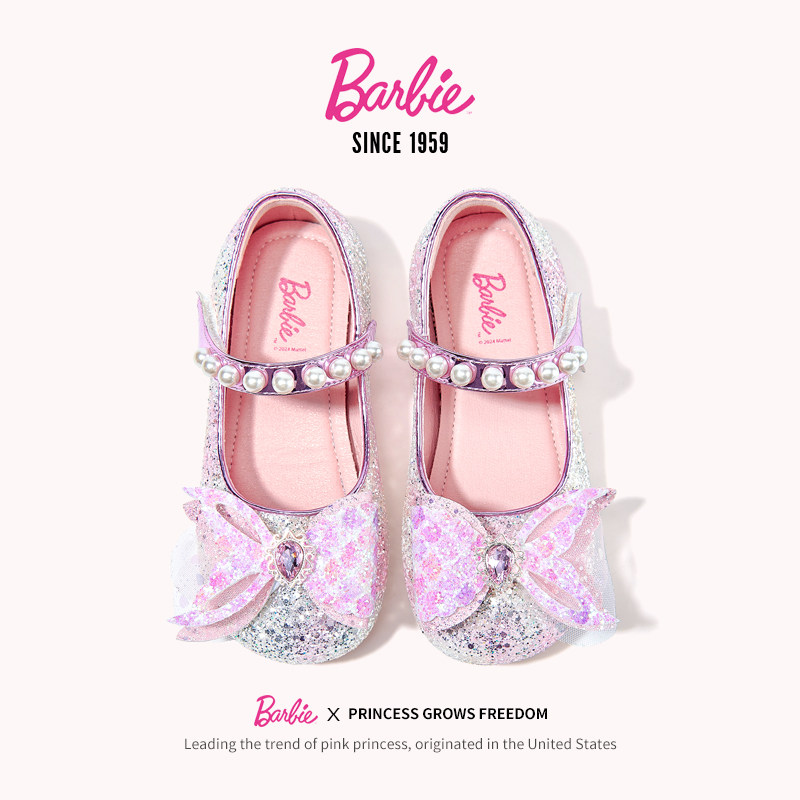 芭比童鞋女童皮鞋2026新款春秋美人鱼软底小女孩公主鞋儿童水晶鞋