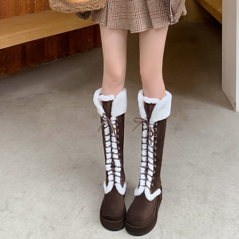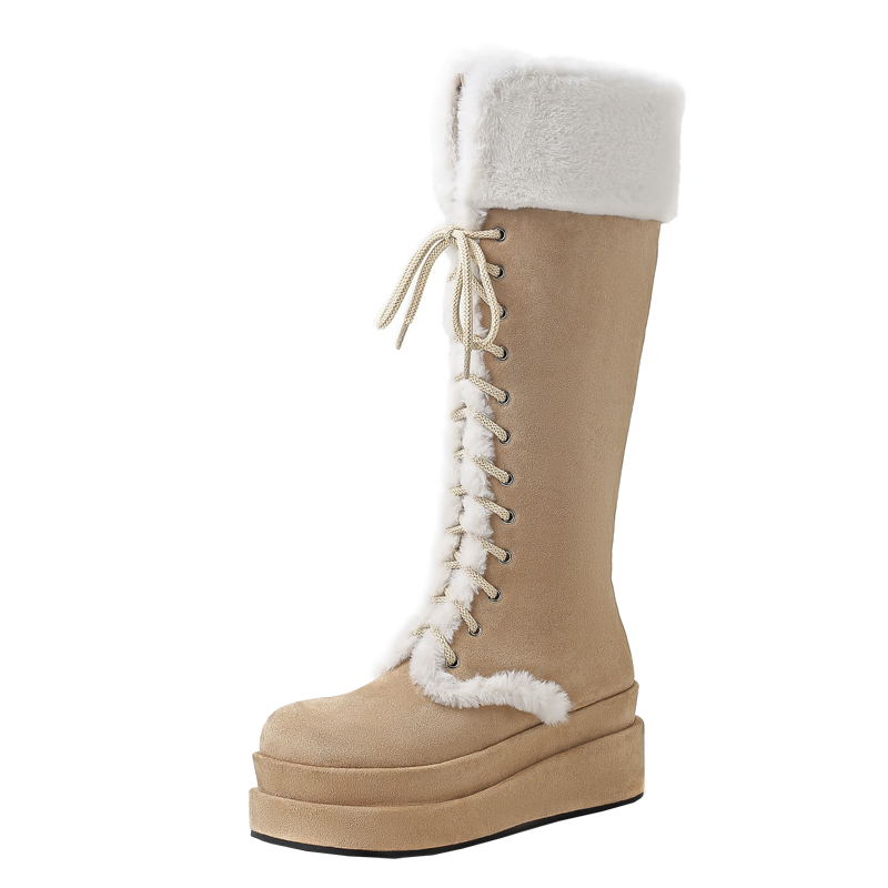 毛毛鞋女毛口加绒骑士棉鞋雪地靴女冬季加厚高筒两穿过膝长筒靴子