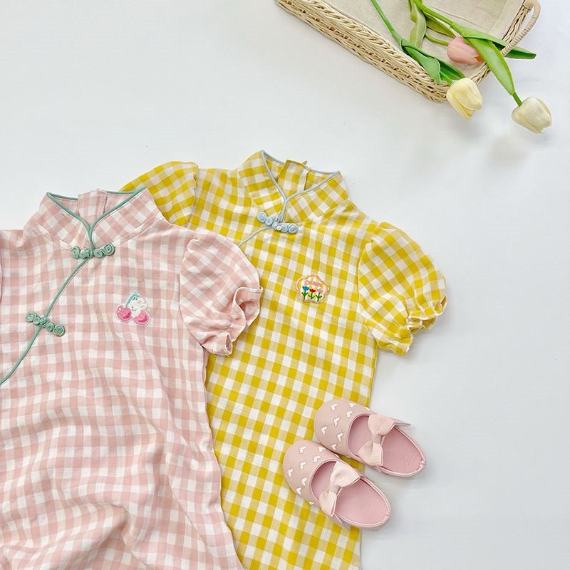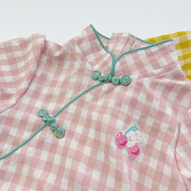 儿童小旗袍汉服2024年新款女童中国风格子连衣裙宝宝薄款夏季裙子