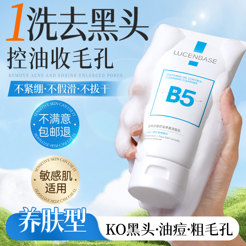 B5氨基酸洗面奶控油深层清洁毛孔温和去黑头男女生洁面乳官方正品
