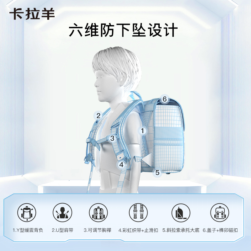 卡拉羊减负立体方包初高中学生男双肩背包轻便女书包防泼水防下坠