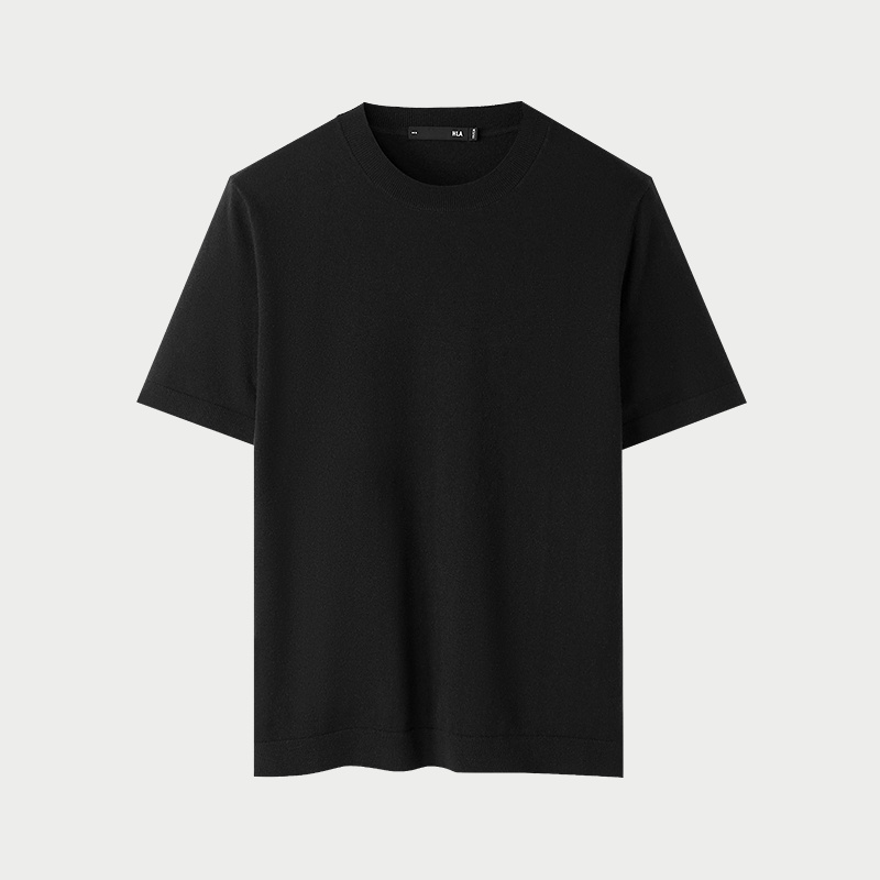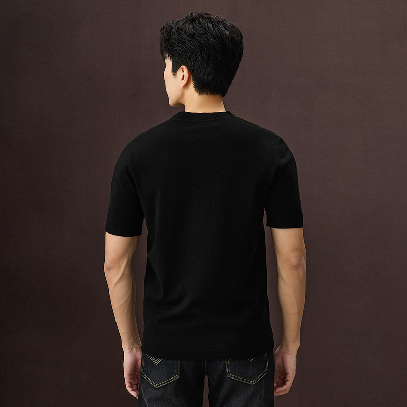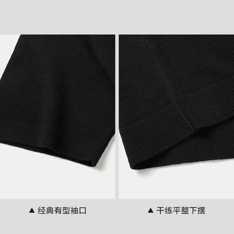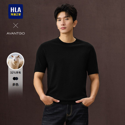 HLA/海澜之家轻商务直筒羊毛短袖针织衫25秋季新款圆领黑色毛衣男