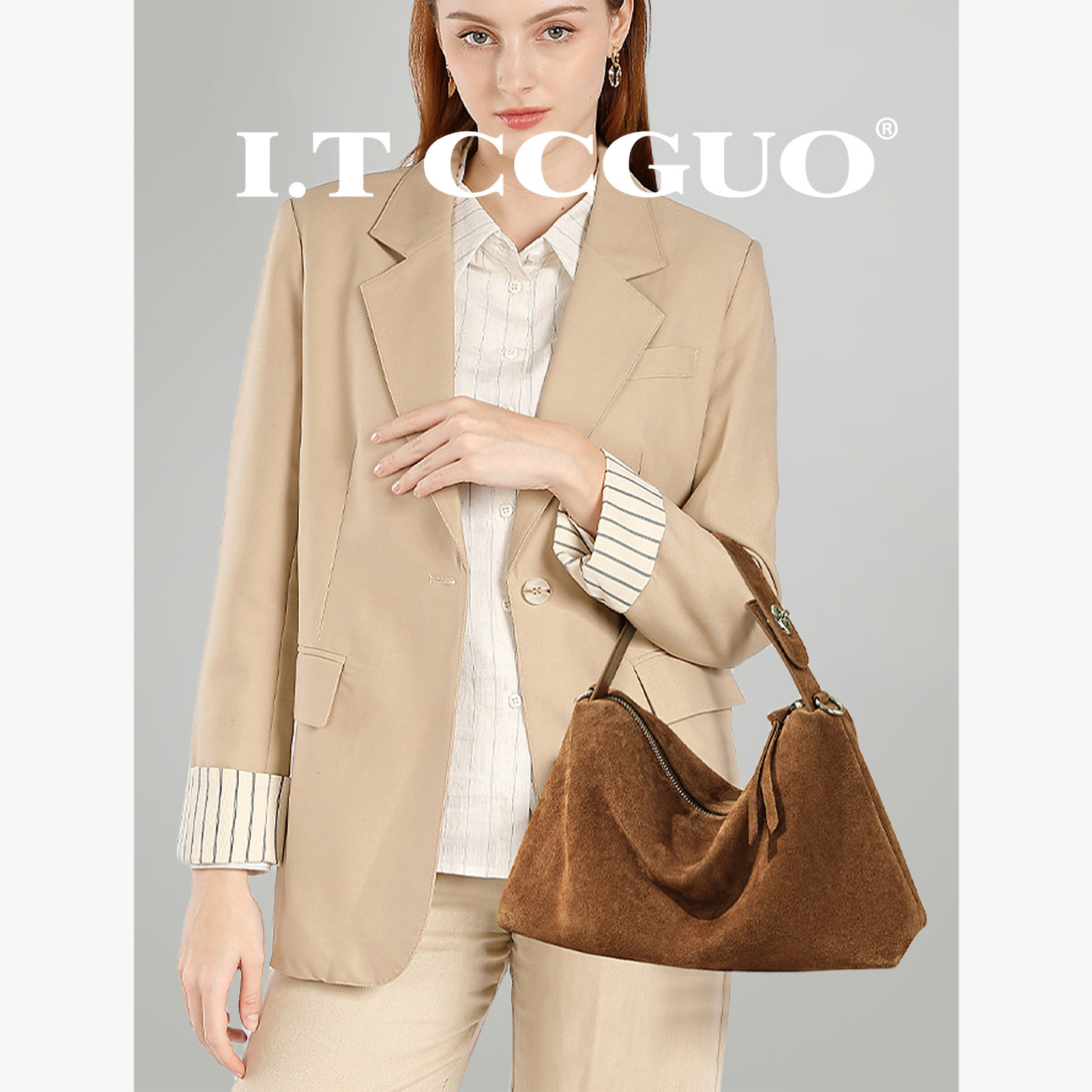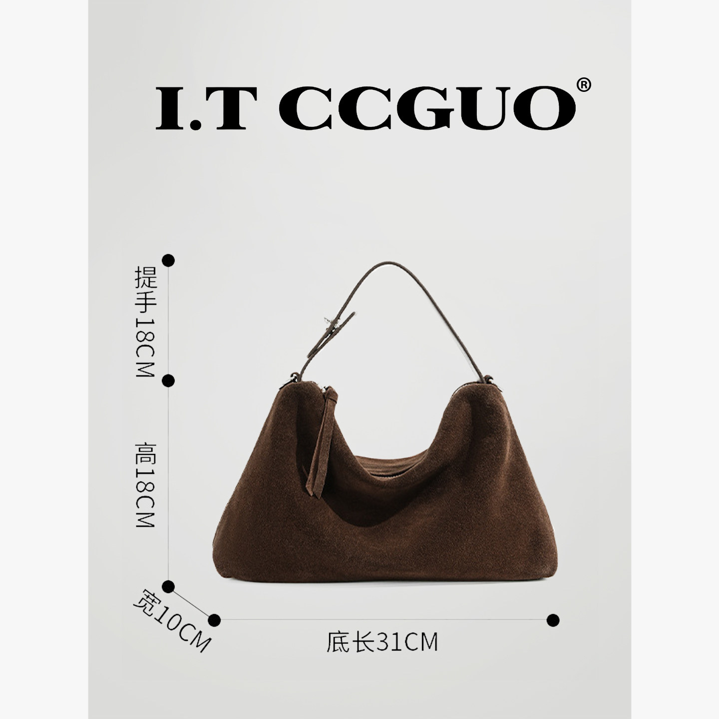 I.T CCGUO头层磨砂牛皮腋下单肩包欧美撞色真皮女包大容量水桶包