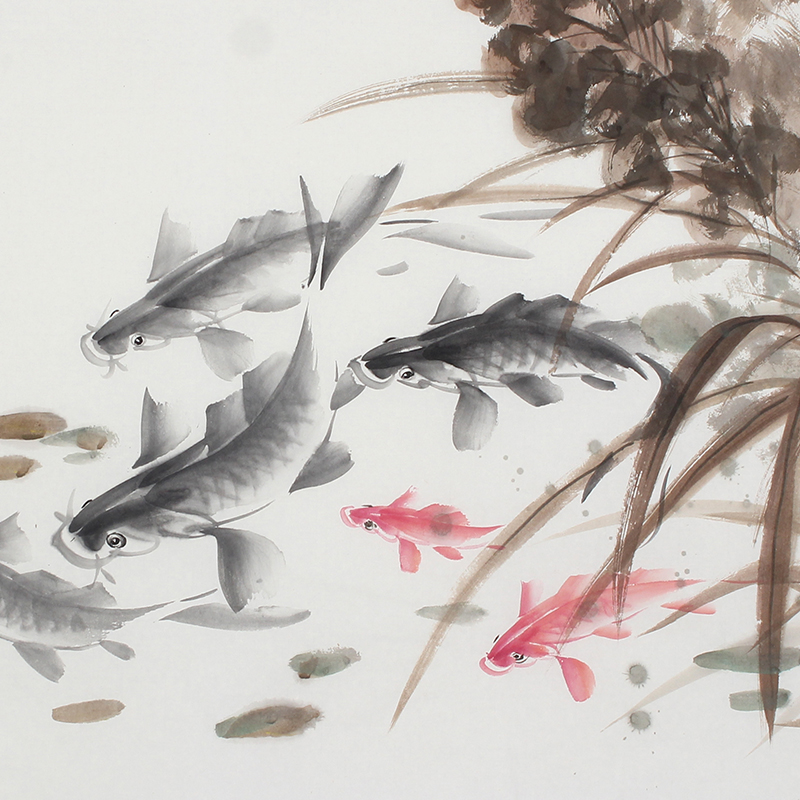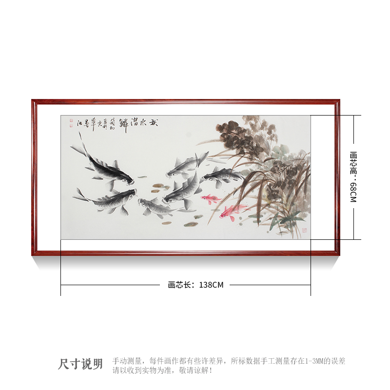 九鱼图家居精品装饰画连年有余画客厅荷花鲤鱼走廊国画招财风水画