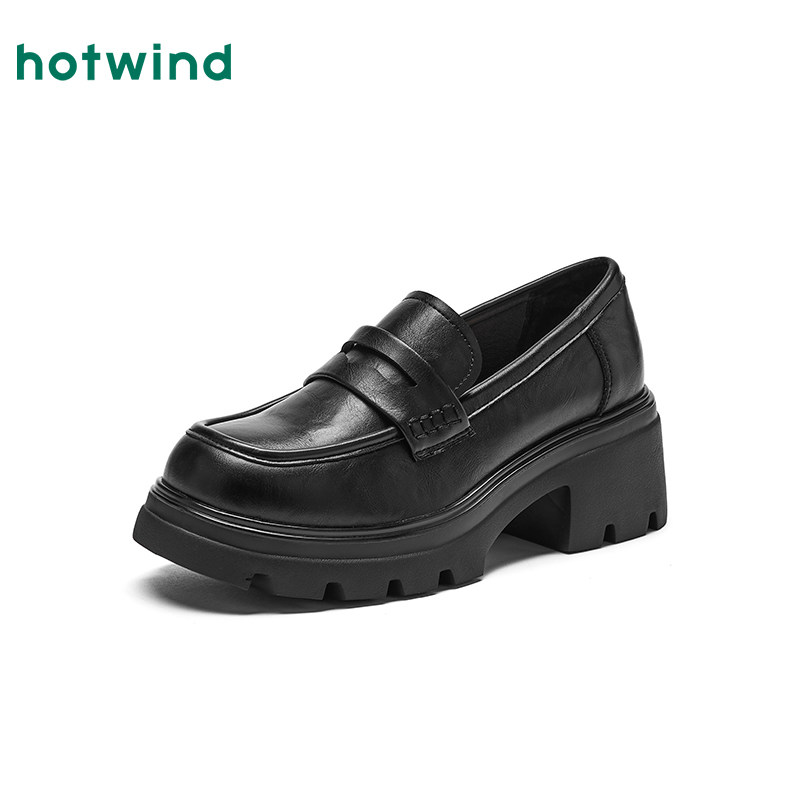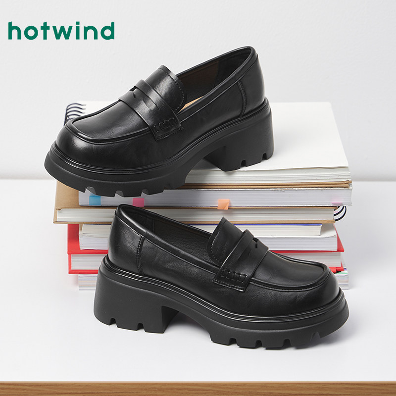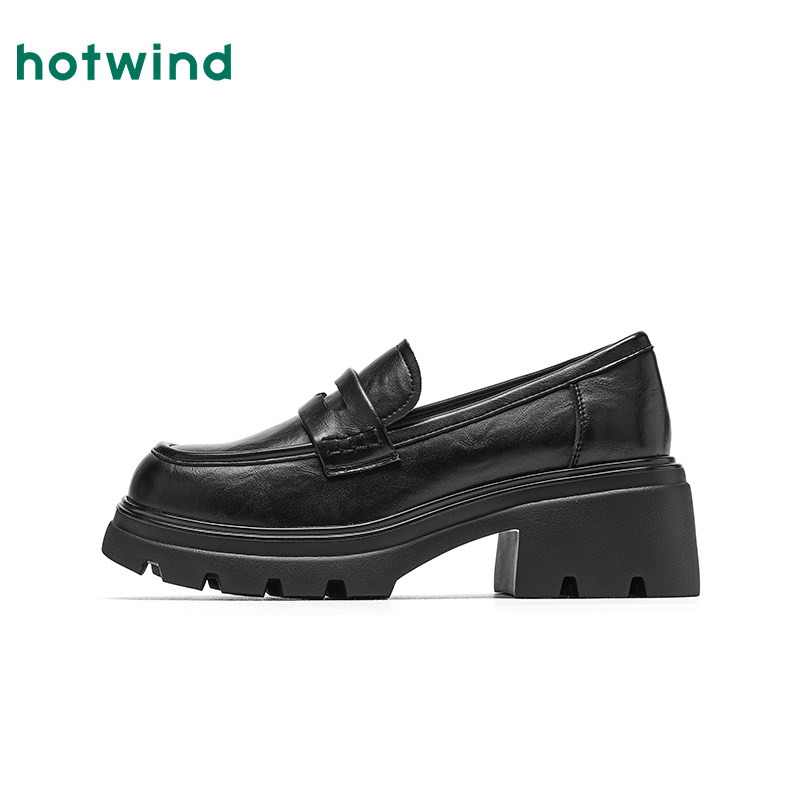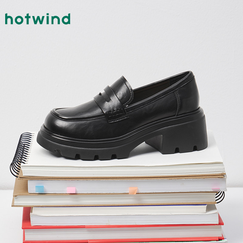 热风厚底乐福鞋女鞋2025年秋季新款女士百搭粗跟单鞋英伦风小皮鞋