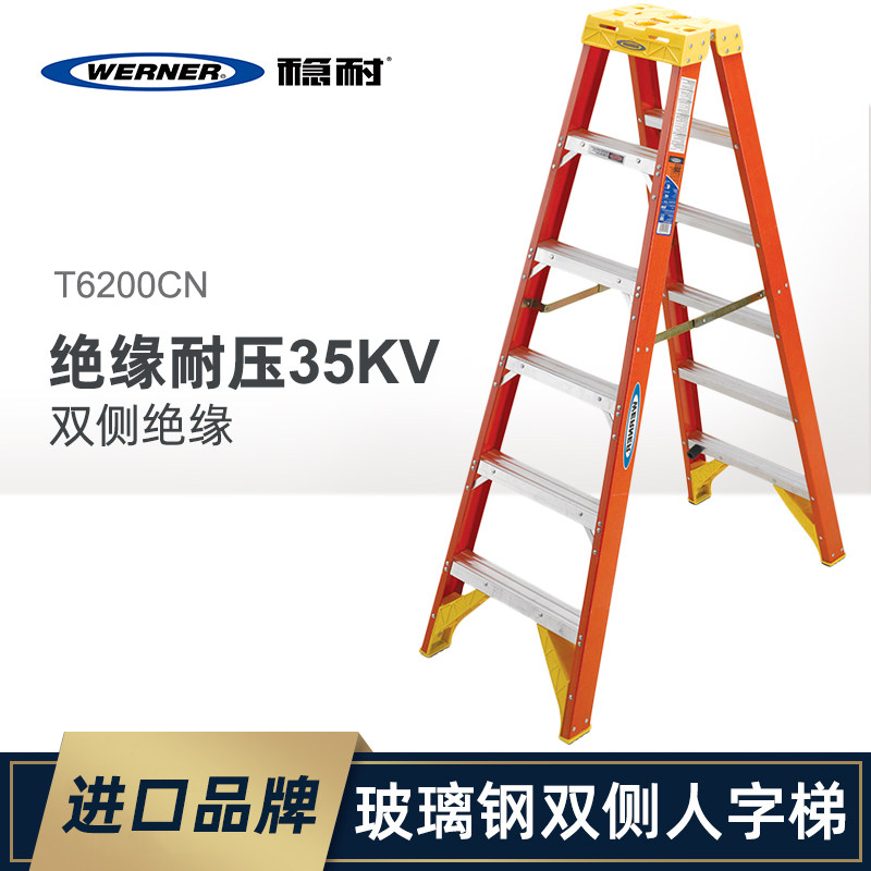 稳耐玻璃钢绝缘双侧工业人字梯 T6206CN T6207CN T6208CN T6210CN
