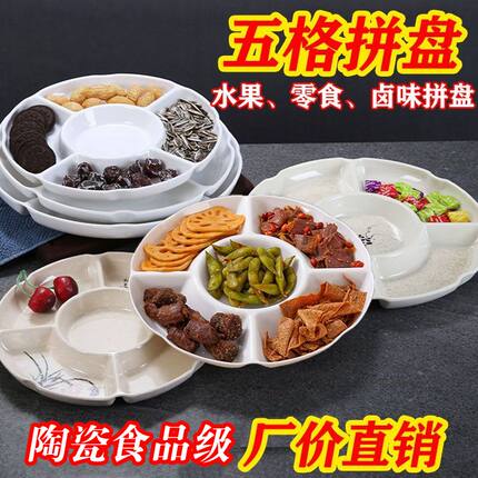 陶瓷盘子五格拼盘水果零食卤水自助餐分格盘果盘小吃摆盘加厚商用