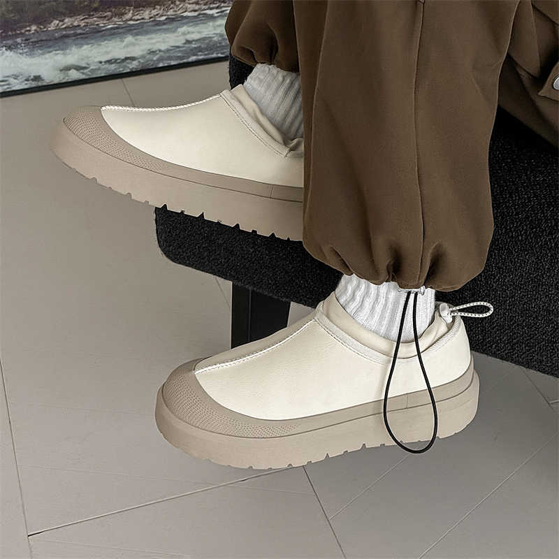 加绒皮面雪地靴一脚蹬加厚棉鞋