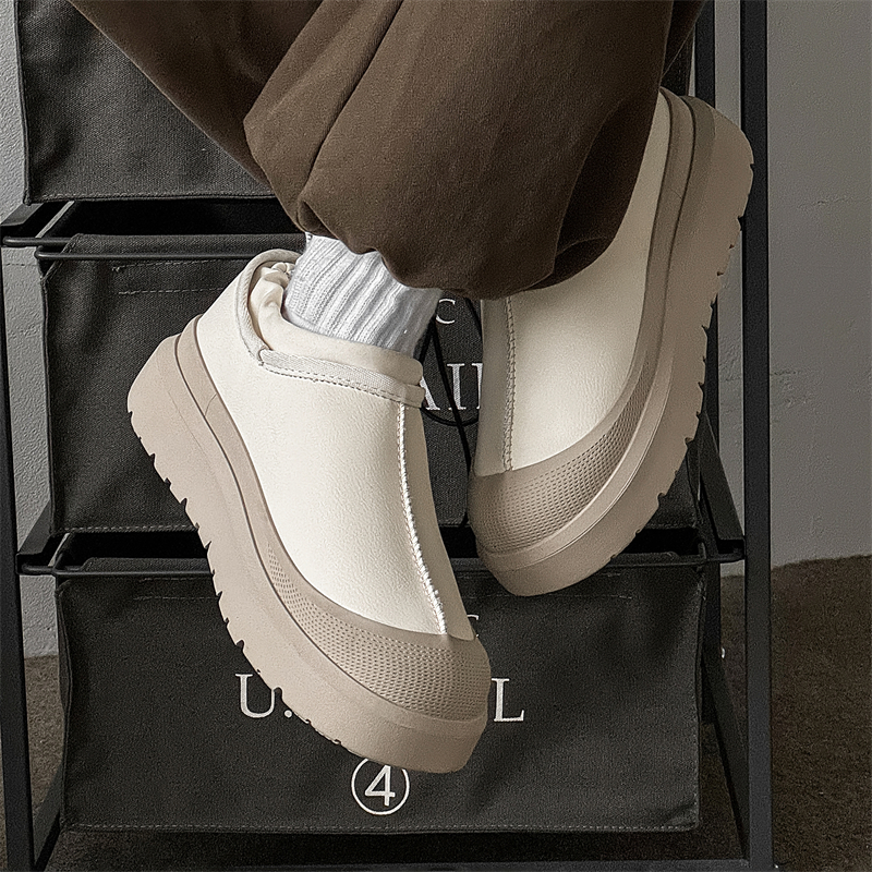 冬季加绒皮面雪地靴男女厚底增高一脚蹬加厚保暖棉鞋高级感休闲鞋