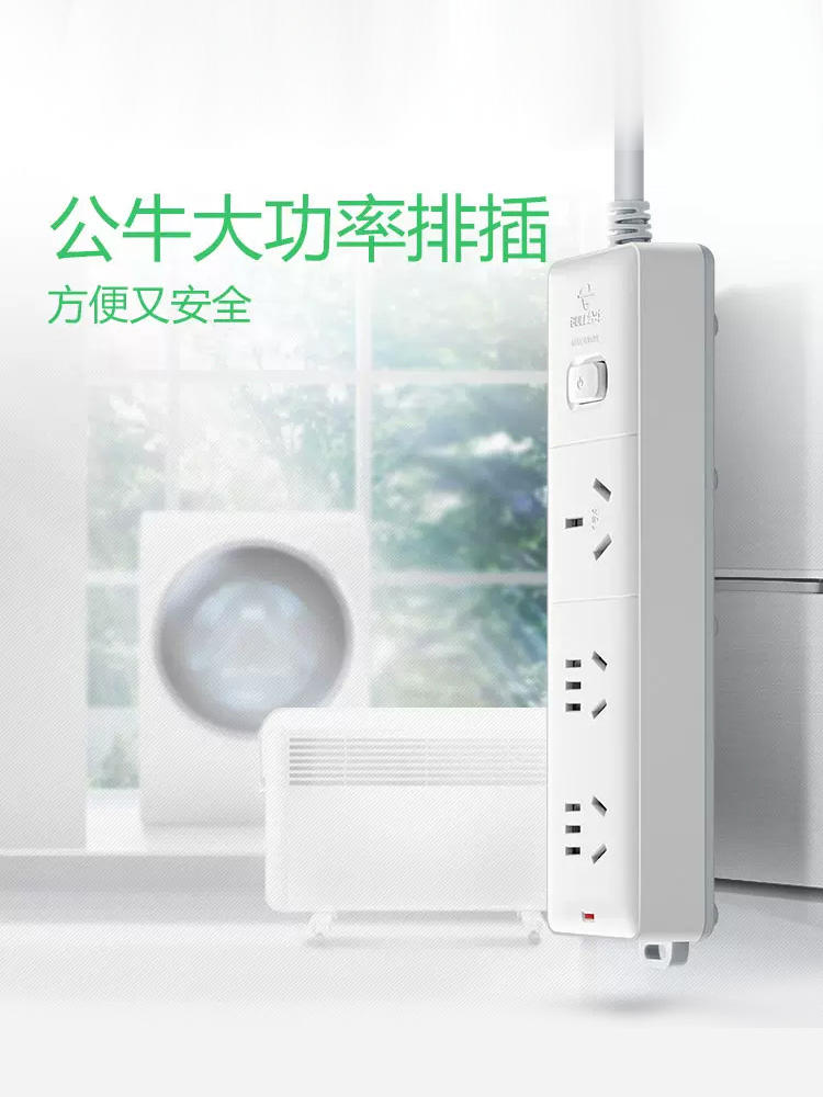 公牛插座官方旗舰店正品接线板多孔位工程插板16A大功率无线排插