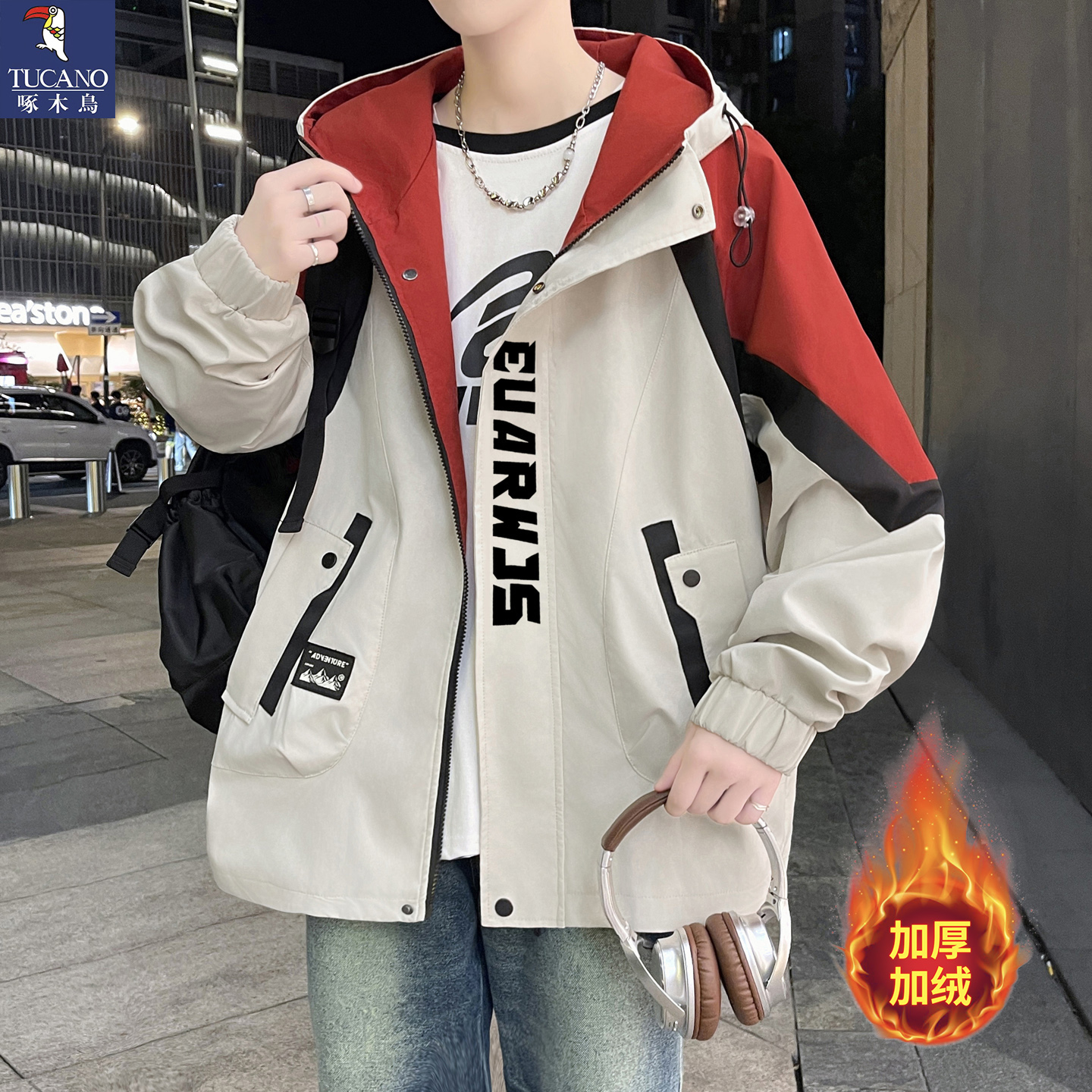 啄木鸟2025春季新款青少年男夹克港风潮流时尚百搭学生冲锋衣外套