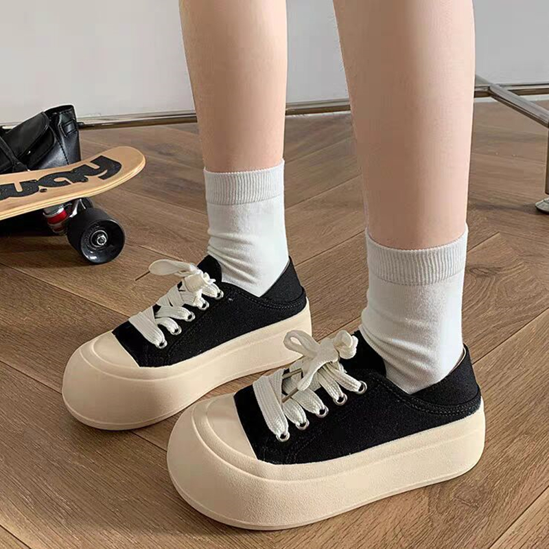 奶fufu丑萌大头厚底小白鞋女2025新款日系宽头小众帆布鞋可踩半托