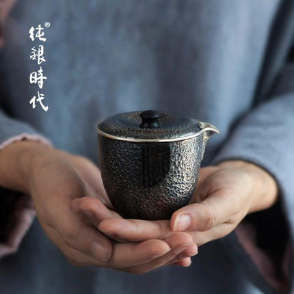 纯银时代 做旧宝瓶泡茶壶足银999日式手抓壶纯手工小号出差130ml