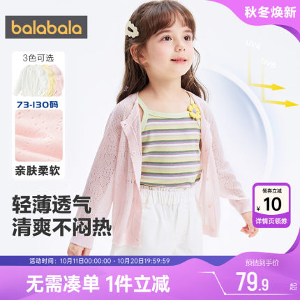 巴拉巴拉女童针织衫外套宝宝薄开衫夏季新款防晒毛衣孩子春秋上衣