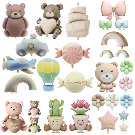 2025新款跨境哑光系列铝膜气球飞机彩虹小熊婚庆生日派对布置气球