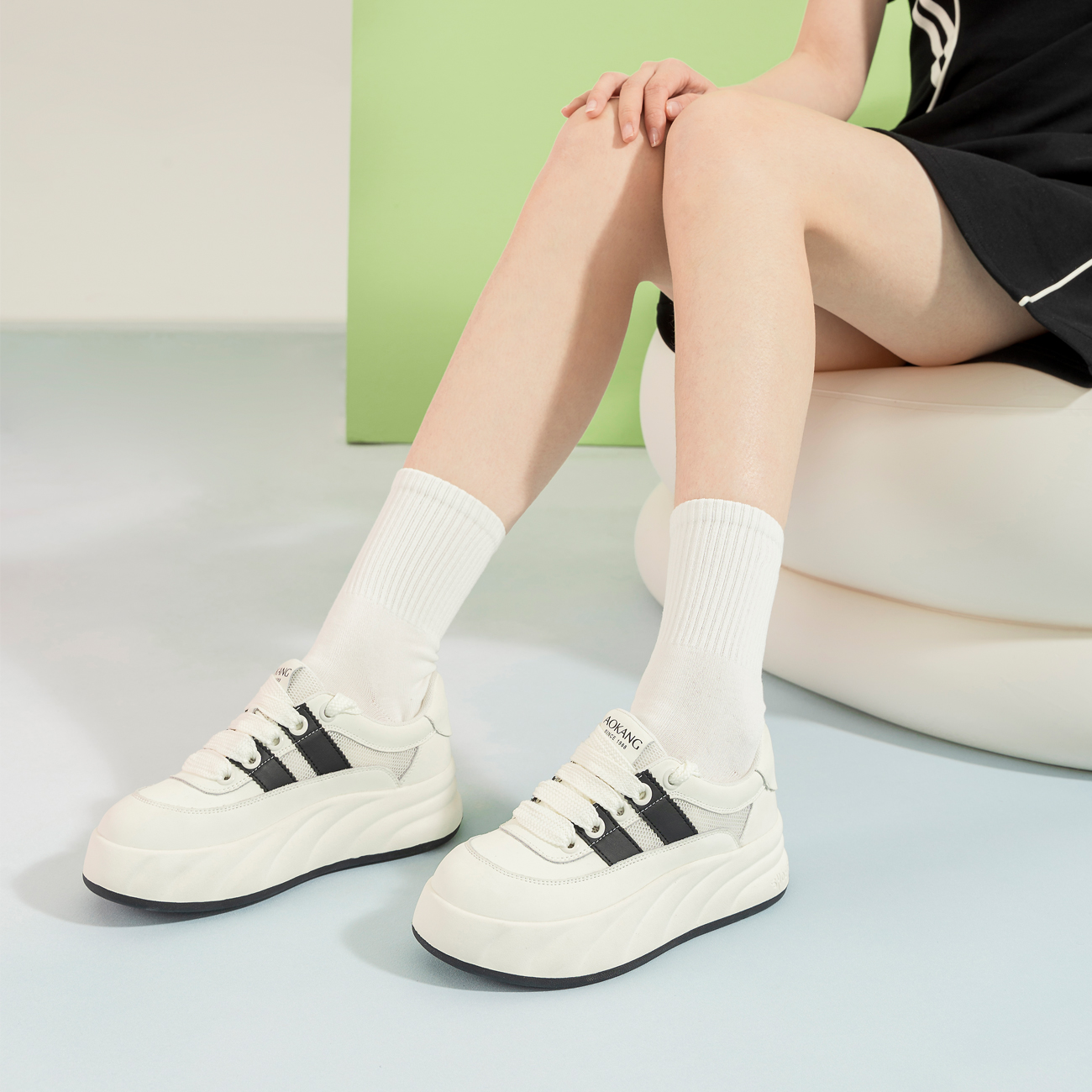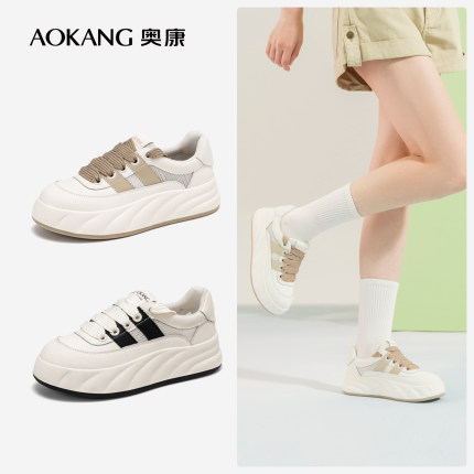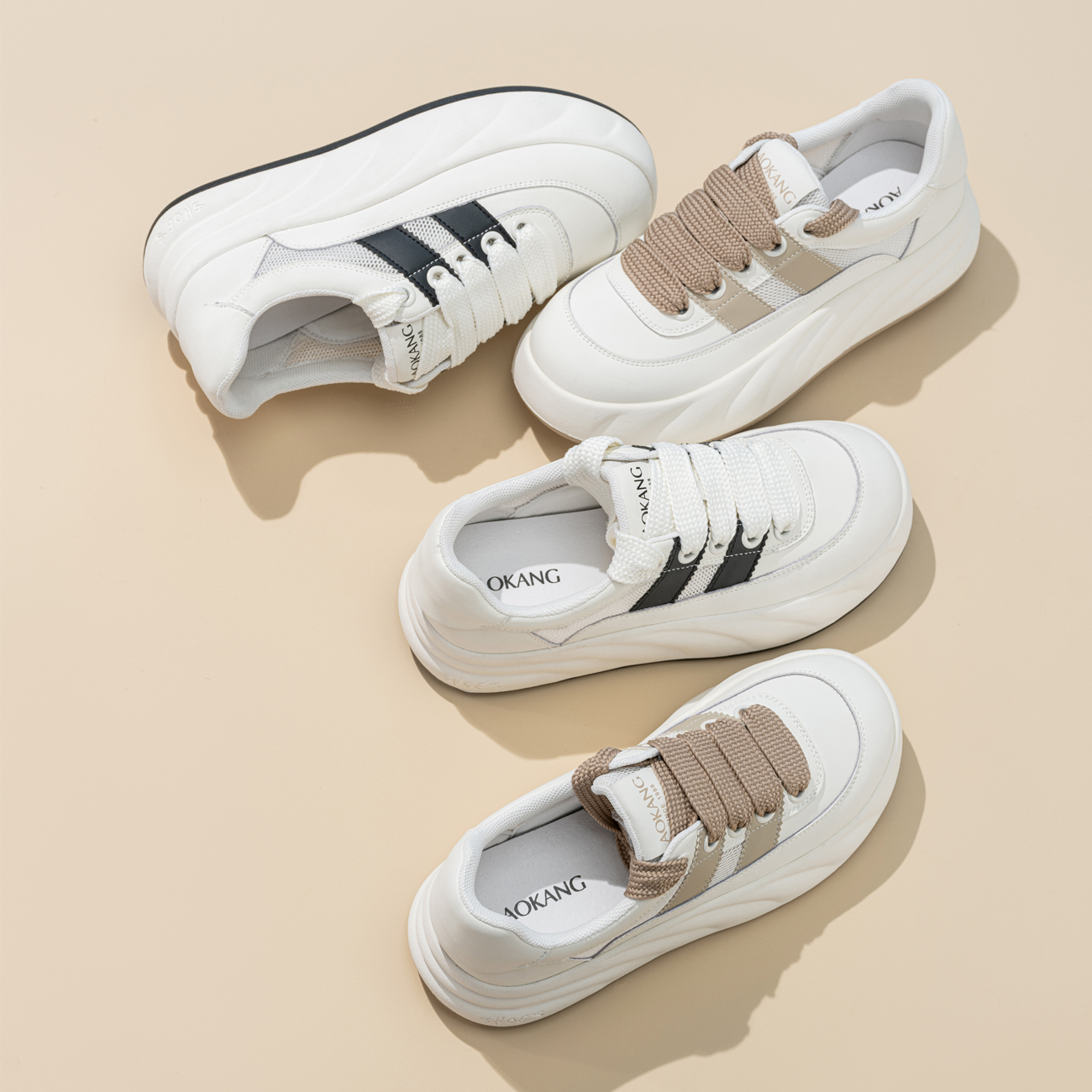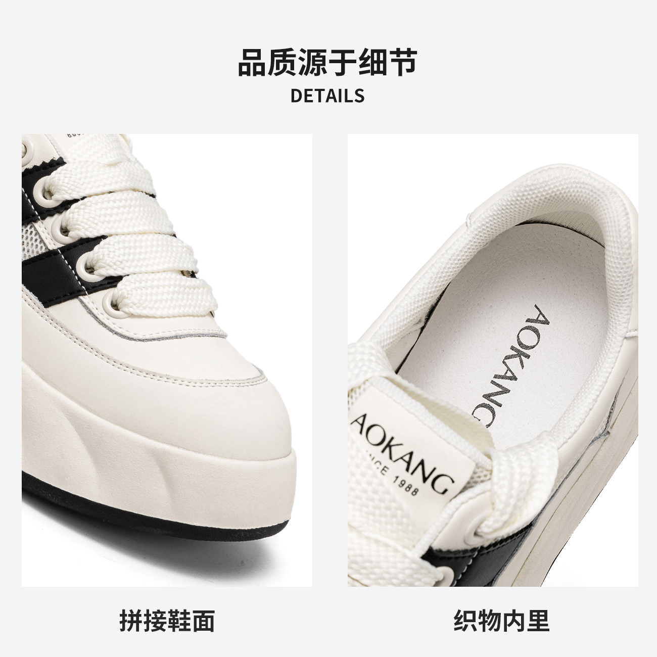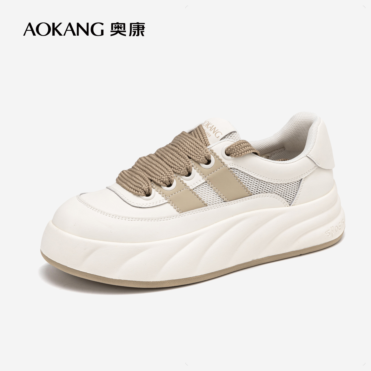 奥康女鞋 夏季新款拼色网面透气休闲鞋舒适厚底系带小白板鞋