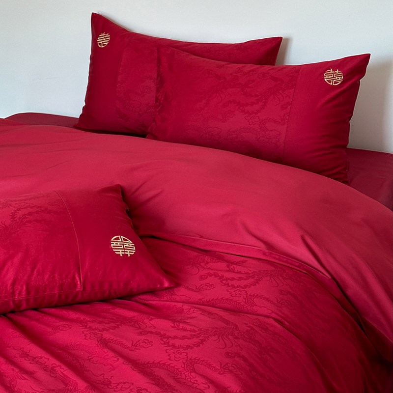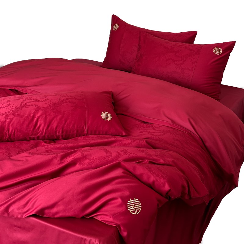 满怀期待b娶你~全棉喜被四件套大红婚庆床单纯棉结婚床上用品