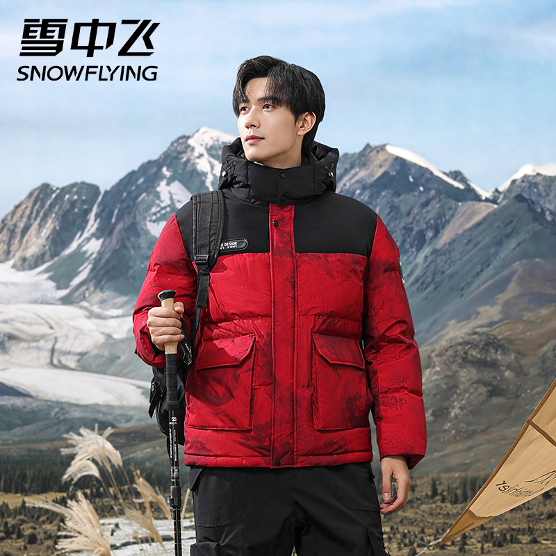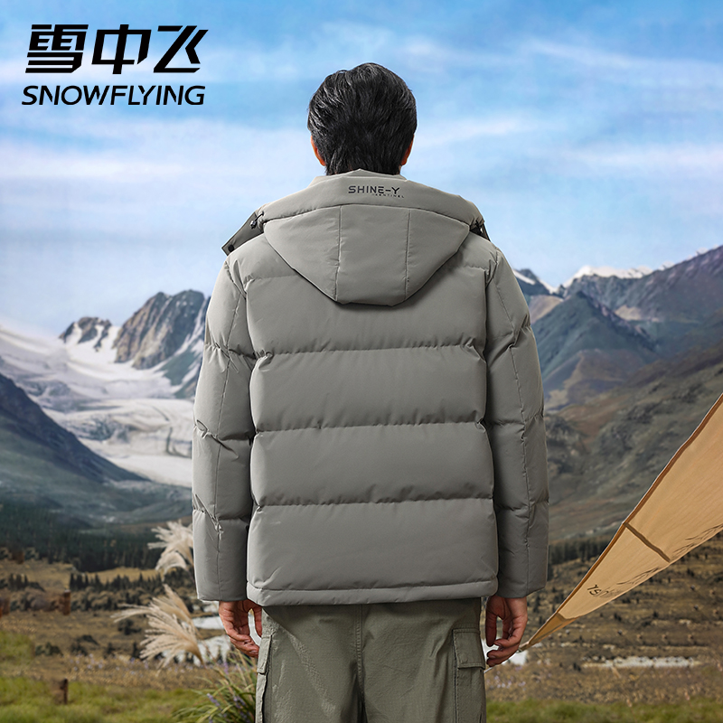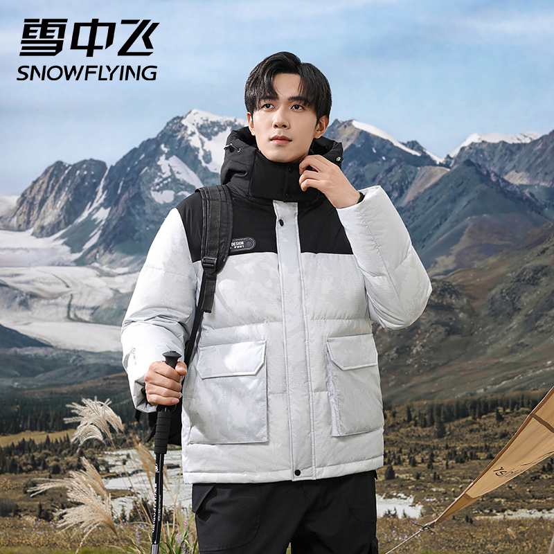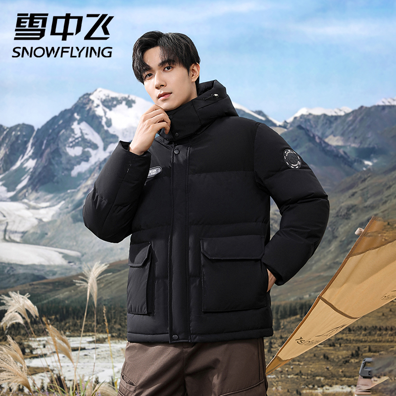 雪中飞羽绒服男士2025新款冬季连帽加厚保暖防风休闲冬装外套男款