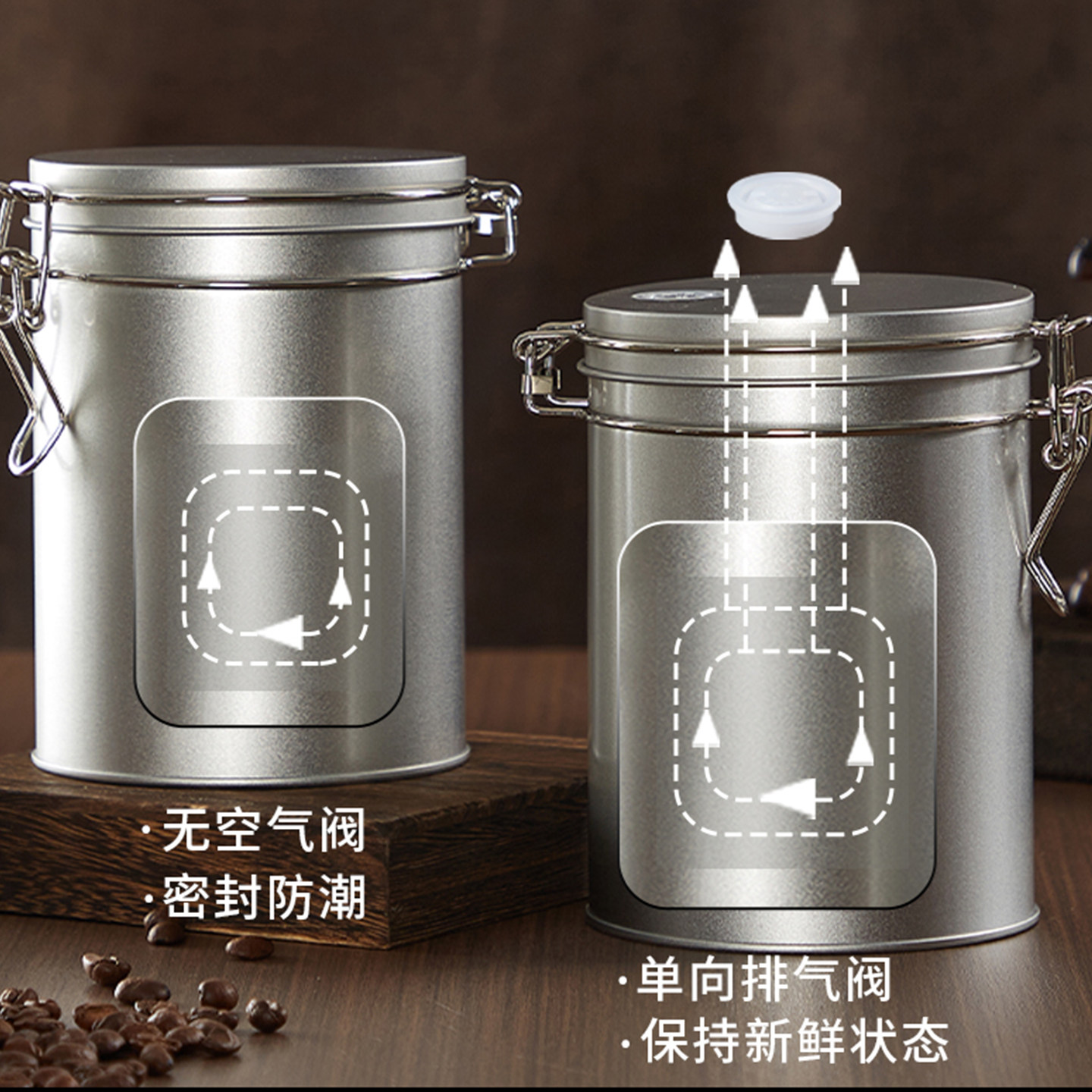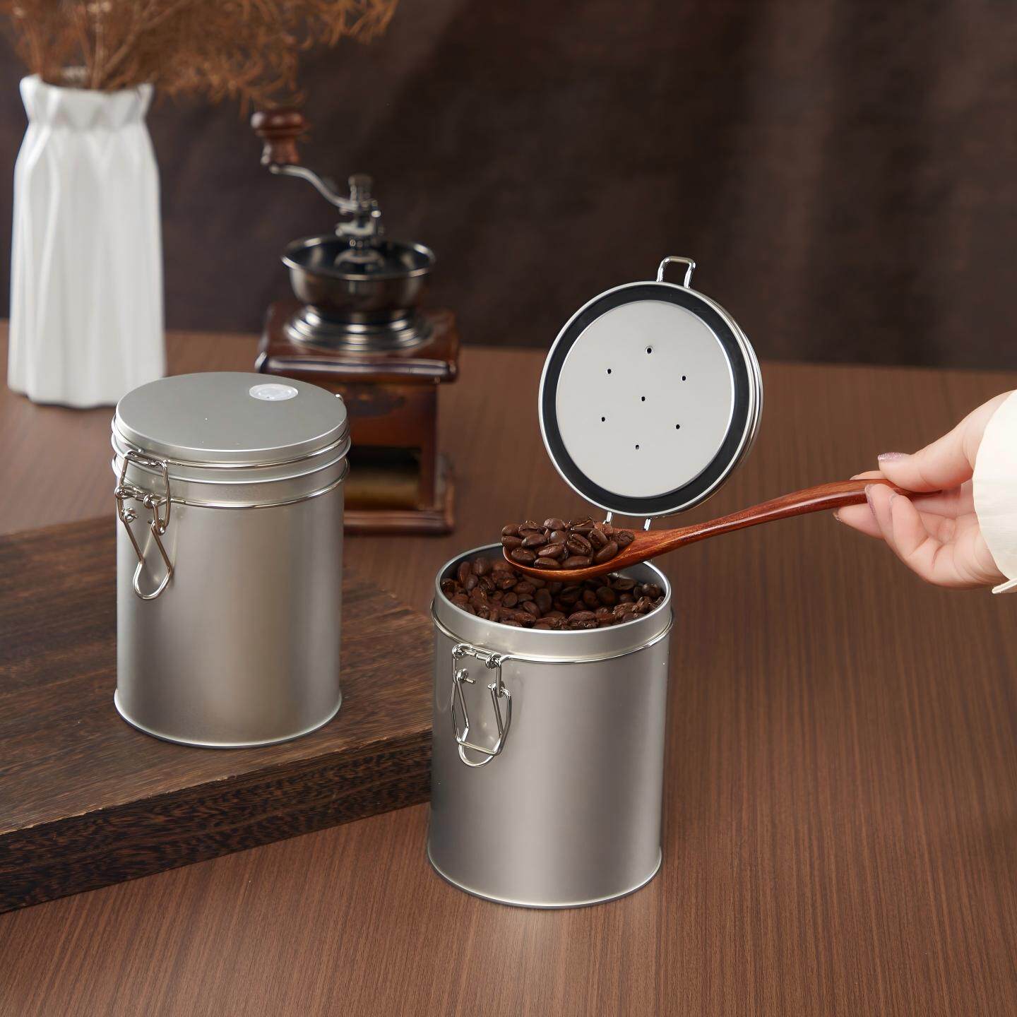 咖啡豆密封罐茶叶储存罐器具藏红花醒豆养豆防潮单向排气分装铁罐