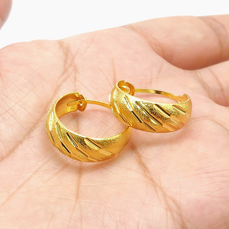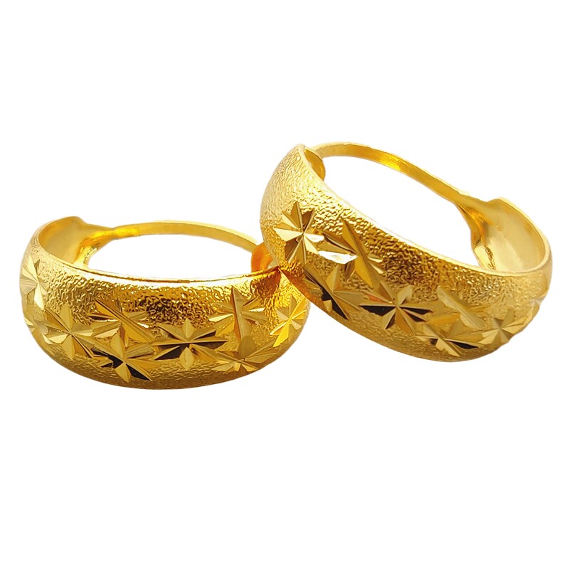 经典沙金耳环女镀24K金满天星老人耳环复古老太太耳圈送妈妈礼物