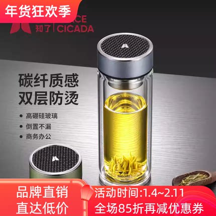 万象时空知了双层玻璃杯男女士大容量简约便携商务家用办公泡茶杯