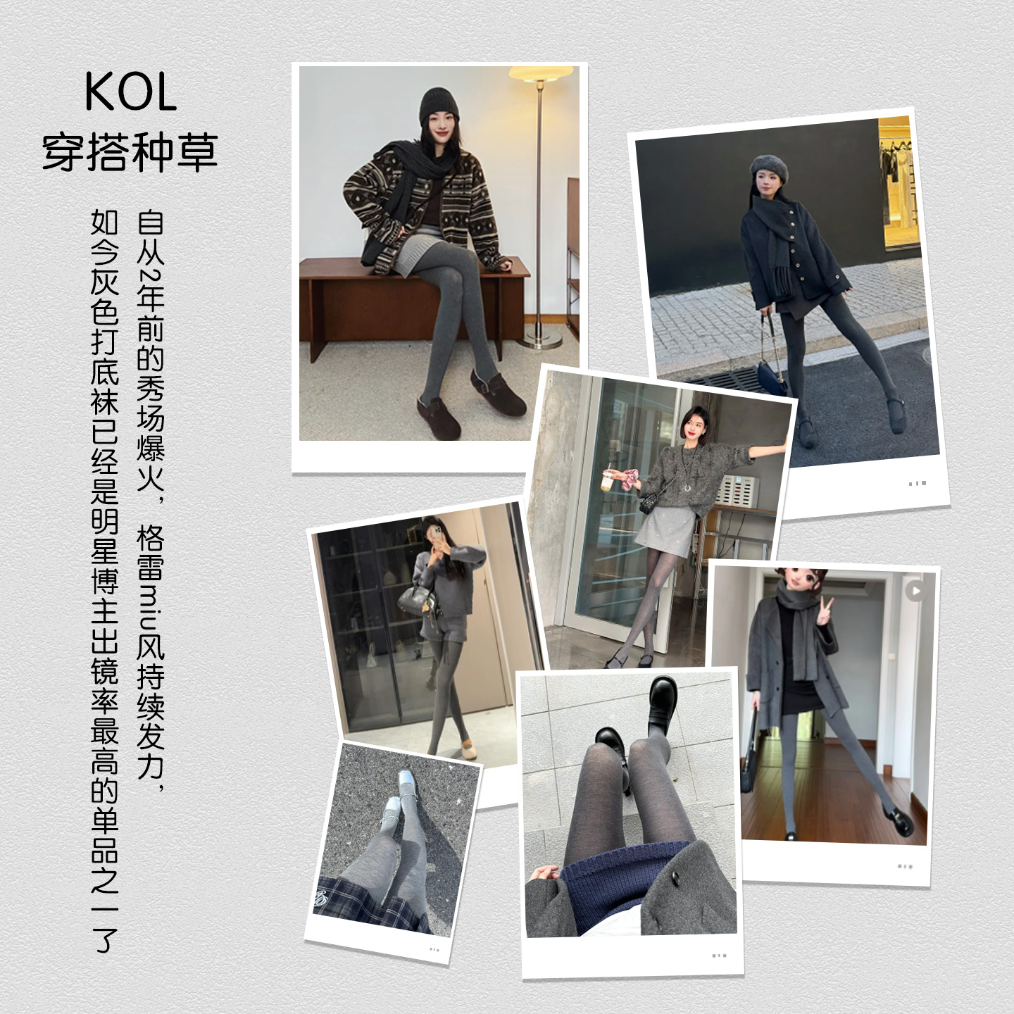 淡时光微透肉连裤袜女春秋季羊毛发热外穿高弹力显瘦灰色打底裤袜