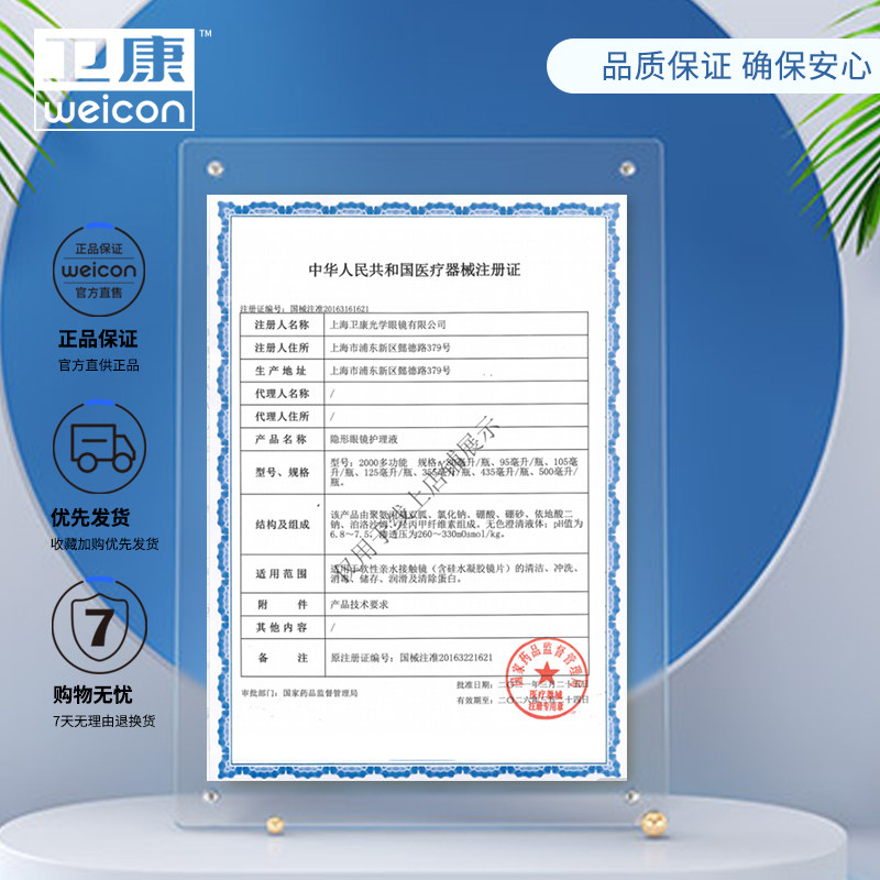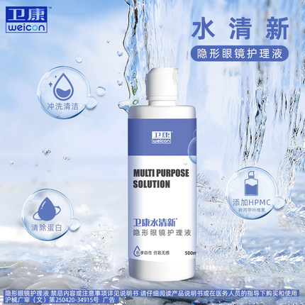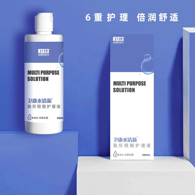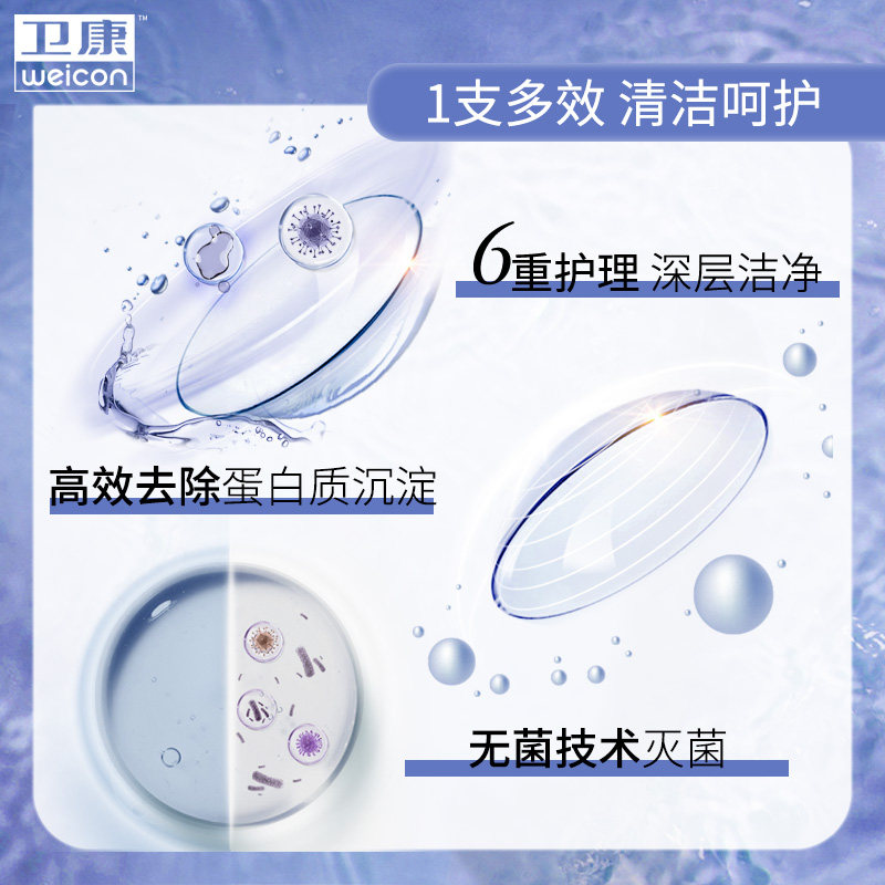3瓶装隐形眼镜清洁护理液卫康水清新视500*2+125ml美瞳清洗大小瓶
