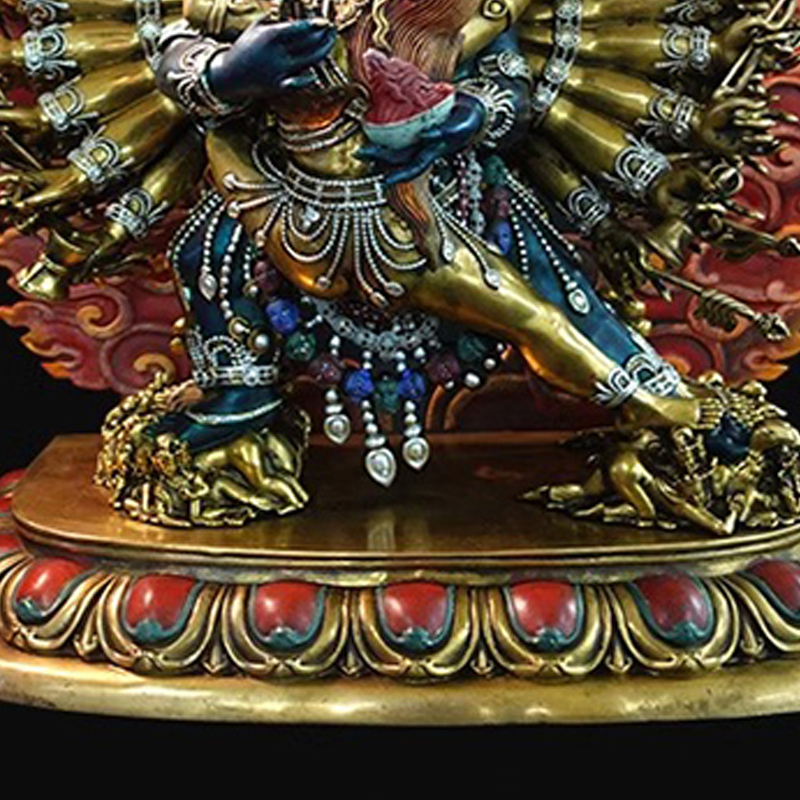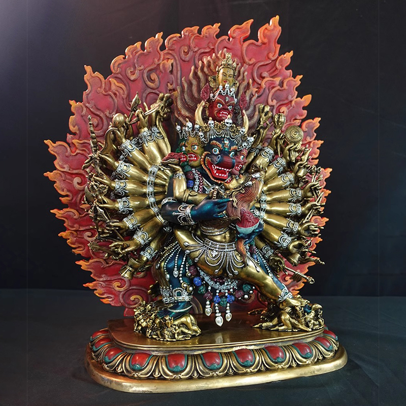 彩绘大威德金刚佛像佛堂摆件尼泊尔工艺热灼色西藏彩绘大威德佛像
