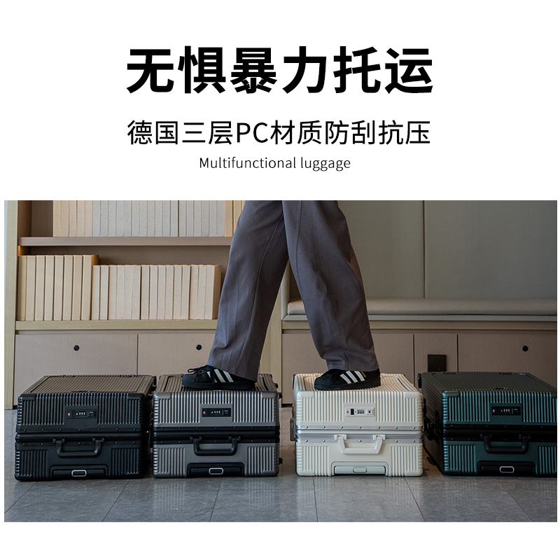 前开口行李箱大容量拉杆箱多功能商务旅行箱侧开20寸登机箱皮箱子