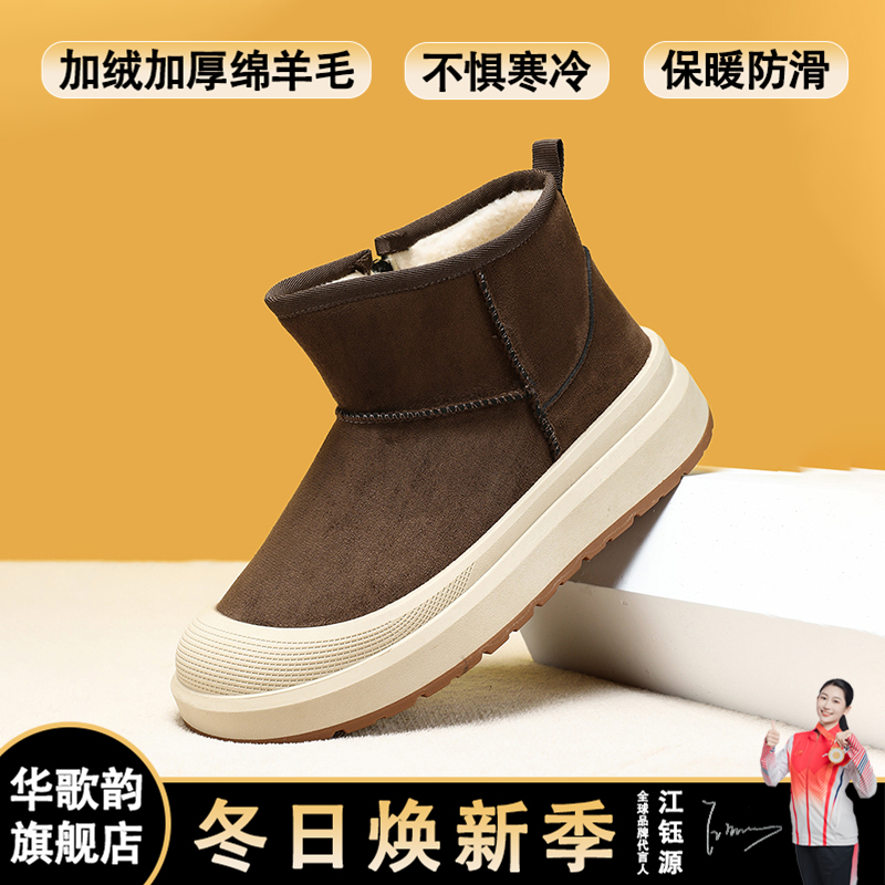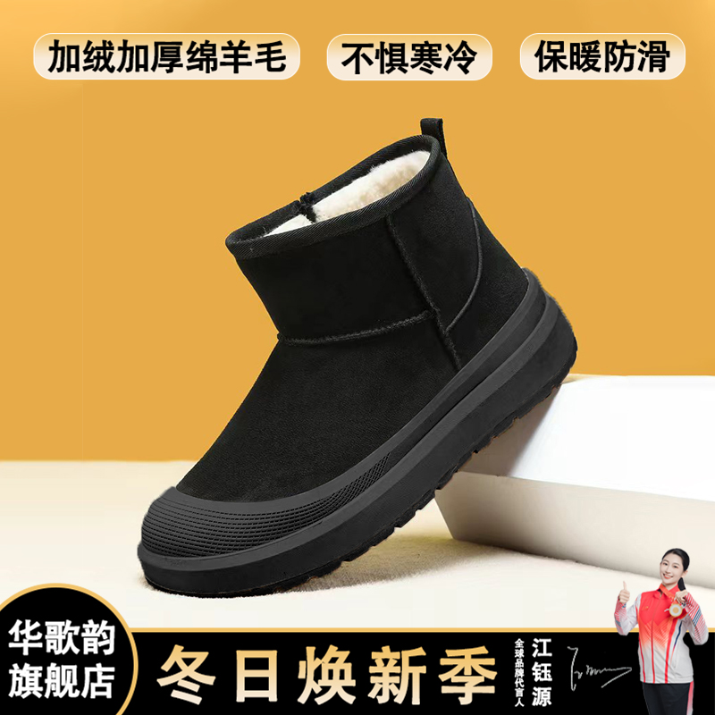 冬季新款厚底时尚雪地靴男绵羊毛保暖休闲棉鞋防滑加厚百搭爸爸鞋