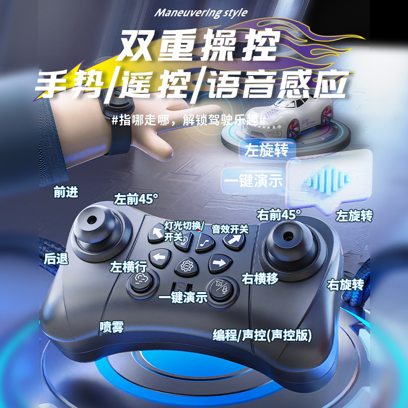 语音控制儿童玩具车汽车带灯光音乐充电新能源喷雾漂移遥控车玩具