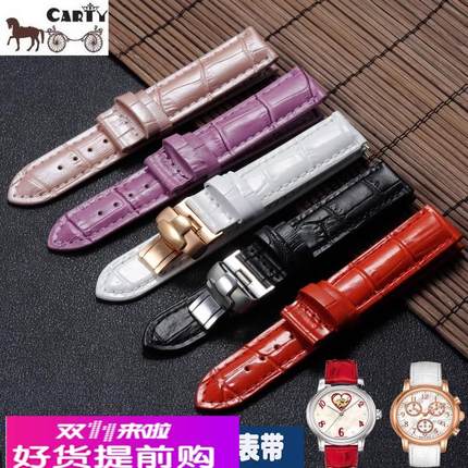 适用原厂CARTY天梭T050韵驰心媛系列女表带真皮鳄鱼纹表链16mm