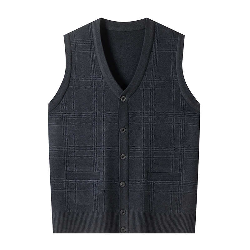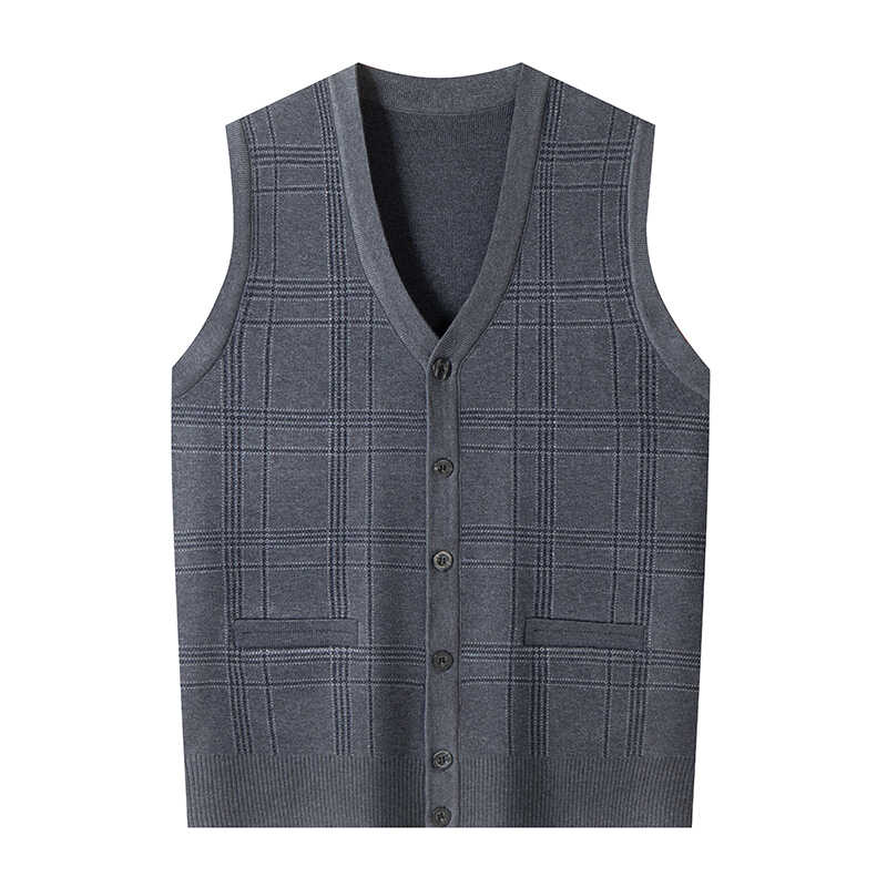 爷爷秋装羊毛格子开衫背心男中老年人马甲毛衣加厚爸爸装针织坎肩