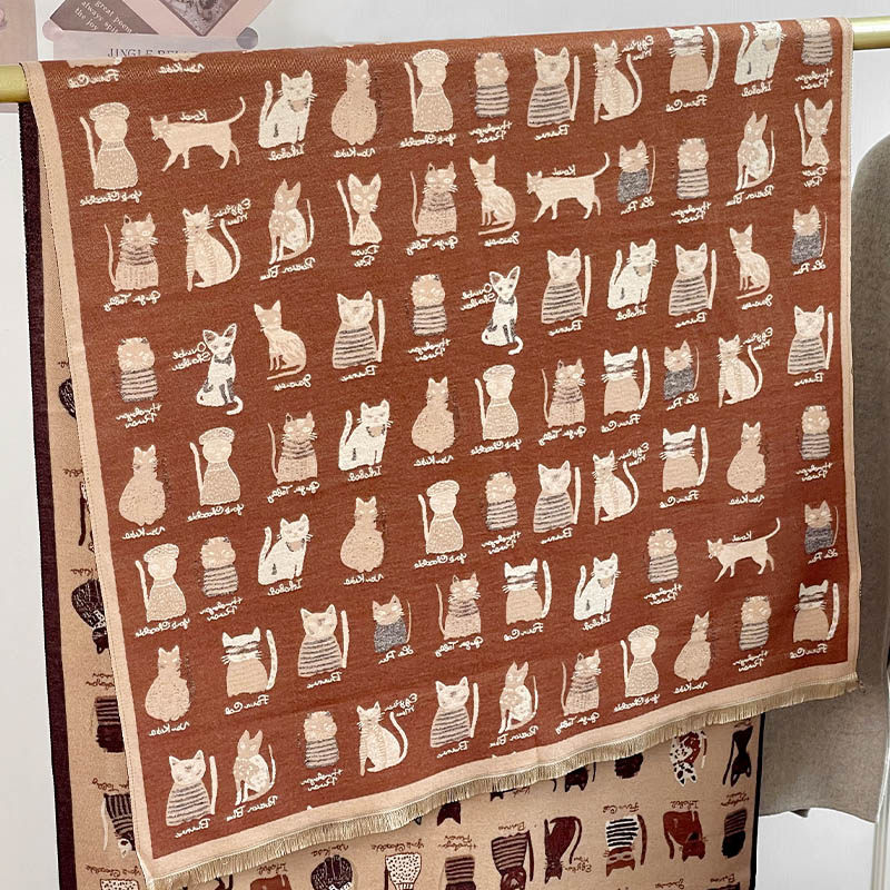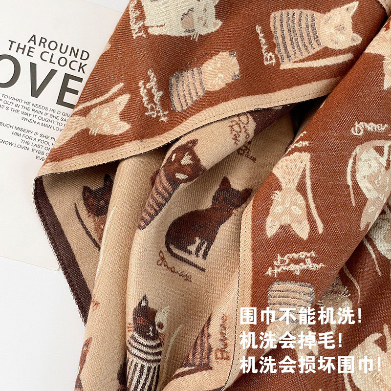 可爱猫咪~重磅双面围巾女冬季百搭加厚保暖仿羊绒高级感披肩围脖