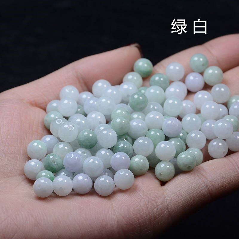 翡翠散珠天然缅甸A货冰种三彩绿白油青玉珠子diy饰品配件手链项链