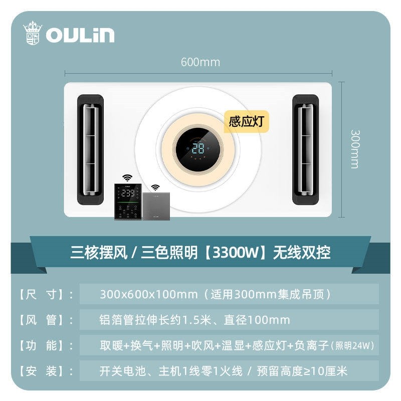 欧琳智能浴霸风暖浴室三核速热集吊顶排气照明一体洗澡间取暖器成
