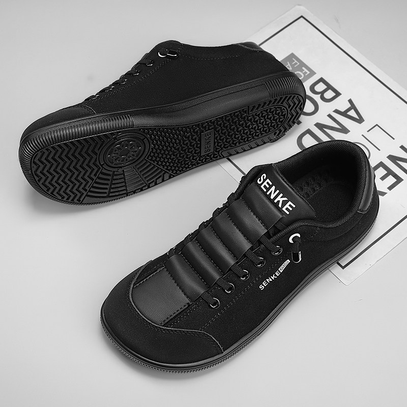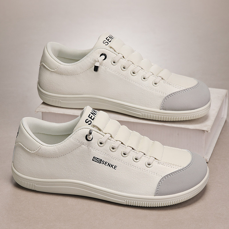 帆布男鞋冬季2025新款一脚蹬宽楦布鞋休闲青少年小白鞋宽头赤足鞋