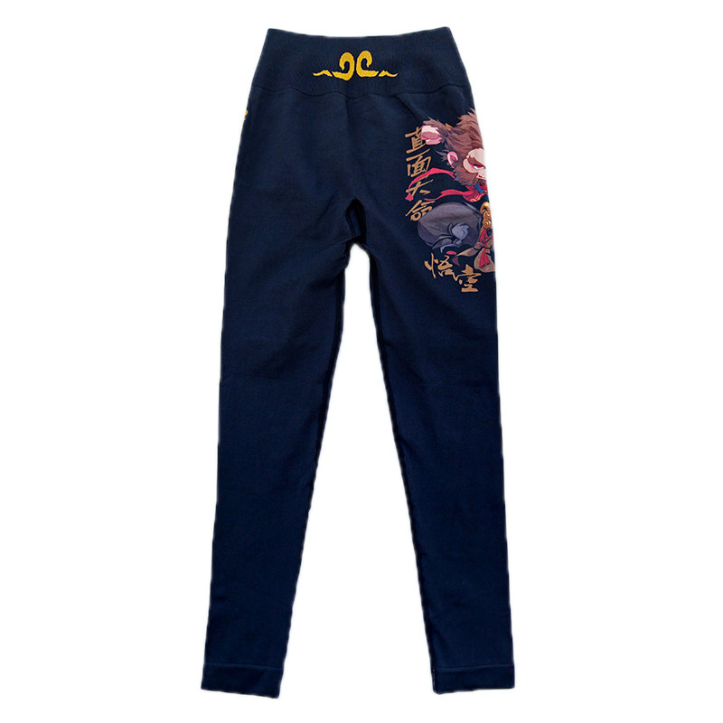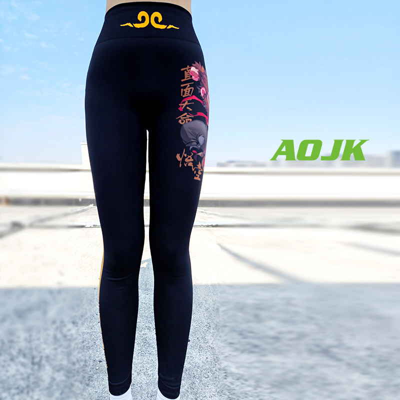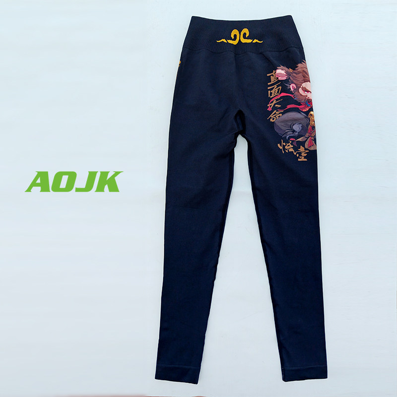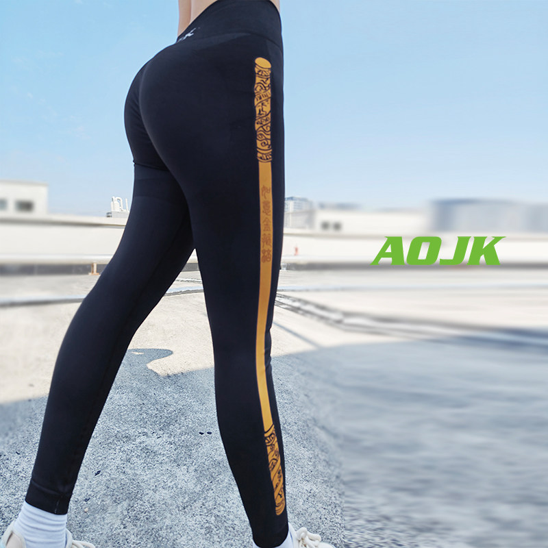 秋季个性印花健身瑜伽裤女蜜桃提臀紧身跑步运动长裤外穿黑色显瘦