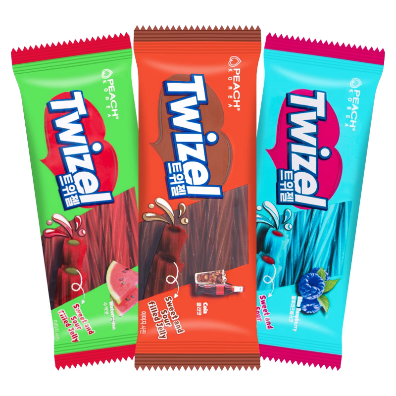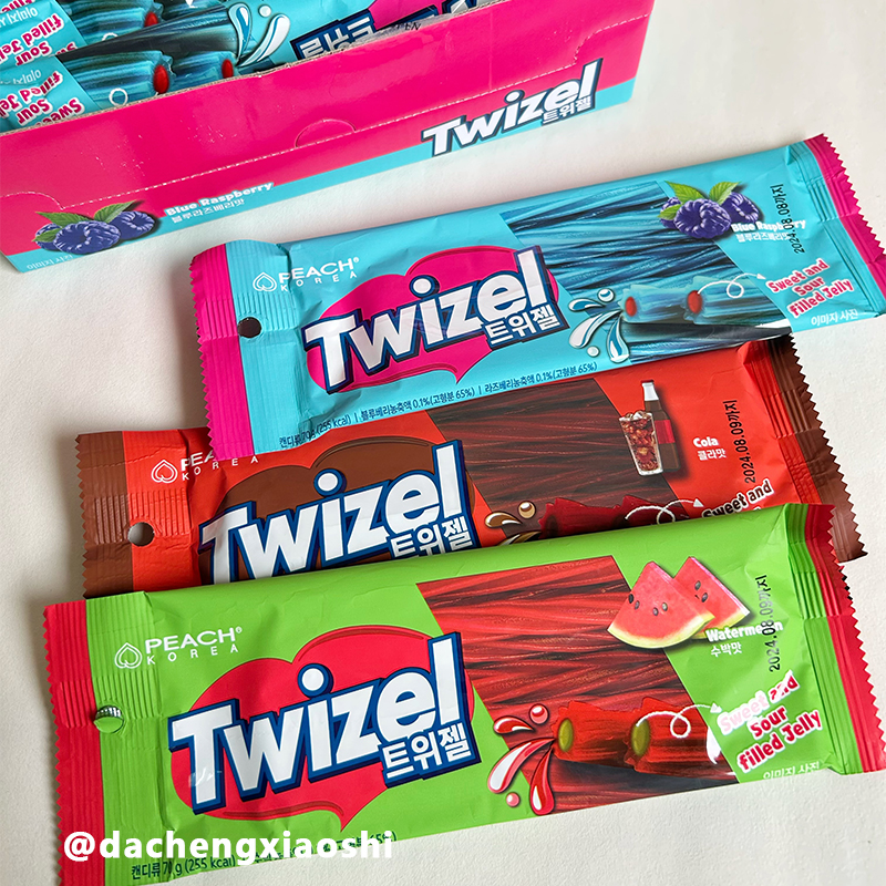 韩国进口YEM夹心螺旋形长条软糖70g可乐蓝莓味twizel休闲糖果零食