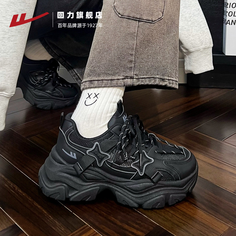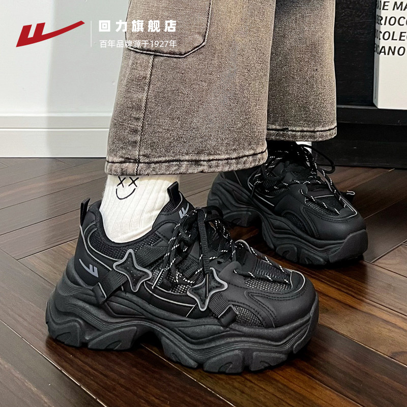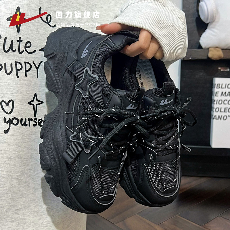 回力黑色老爹鞋女款2025薄款秋季透气女鞋ins小个子休闲运动鞋子