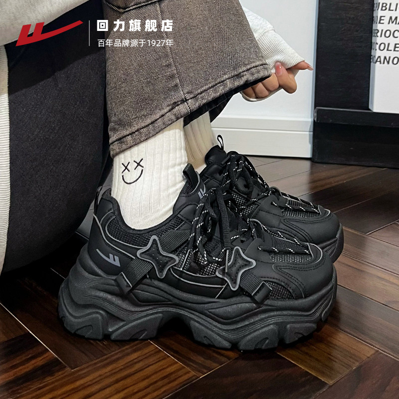 回力黑色运动鞋子女厚底老爹鞋